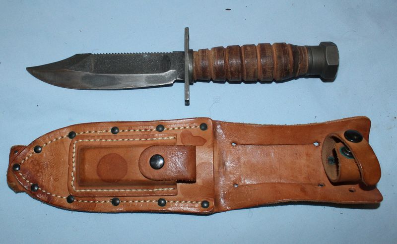 Vietnam Era pilot's survival sheath knife; Ideal Products "Arkansas Toothpick Bowie knife; Fiskars Finland "Normark" fillet knife; 2 Western "Crosstrail" titanium sheath knives; Roper lockblade folding ranch pocket knife.