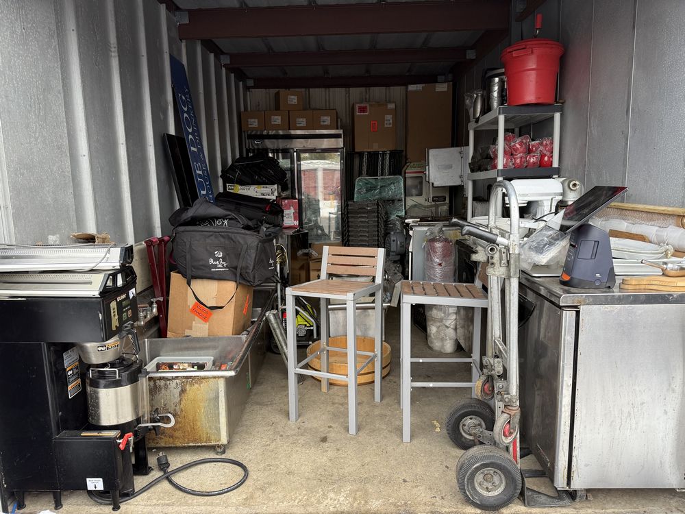 Contents of a 10' x 20' storage unit being sold by the storage unit owner. This storage unit contains Contents of closed down restaurant/cafe: includes Bunn coffee maker, stainless steel sinks, delivery bags, chairs, lights, shelves, plastic crates, cookbooks, Beverage Air UCR20Y fridge, Beverage Air UCR34Y Fridge, Delfield Undercounter fridge, Atosa Glass Door Fridge, Chafing Pans, FMC Fresh n Squeeze Juicer, Meat Saw, Pie Press, Adcraft Fryer, Cecilware Fryer, Mason Jars, Mugs, cream dispensers, plates, bowls, rice warmer, salad spinner, power washer, soup warmer, Hobart mixer, kitchen aid mixer, containers, POS system, ryobi pressure washer, Turbo Air TWR-72SD fridge and more. The functionality of electric/electronic items are unknown/not tested. The authenticity of items have not been verified or guaranteed on any/all items. Items are located in Wappingers Falls, NY.