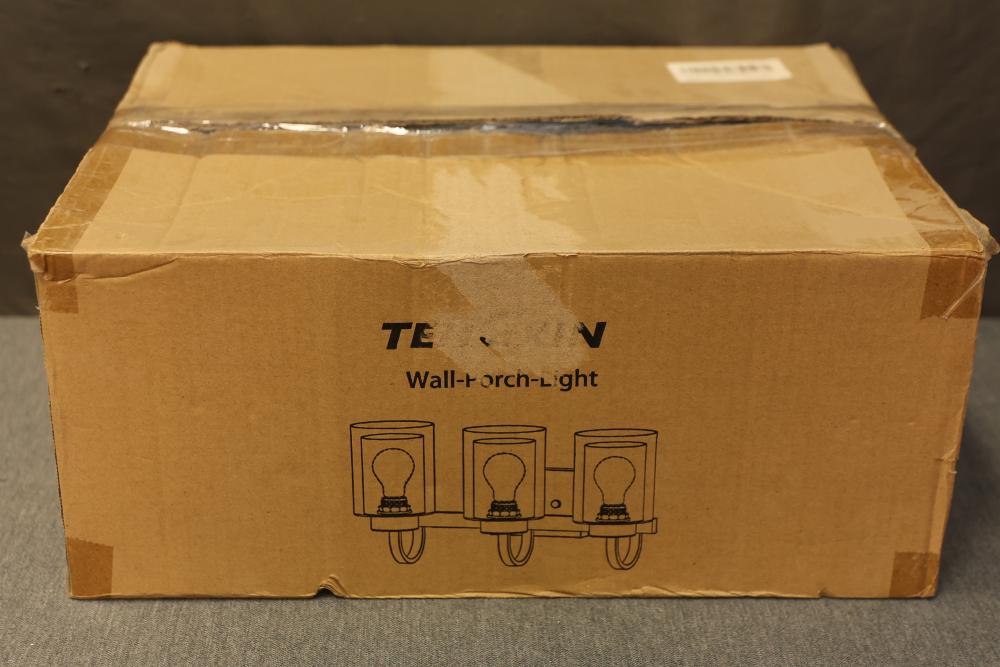TENXGIN TXVLBK02 3-Light Bathroom Vanity Light in Black with Dual Glass Shades, 18.1 Inches. This fixture features a sleek black finish and dual glass shades, offering both durability and style. The 18.1-inch design is ideal for modern bathroom spaces. Item comes in its original packaging. Pickup only.