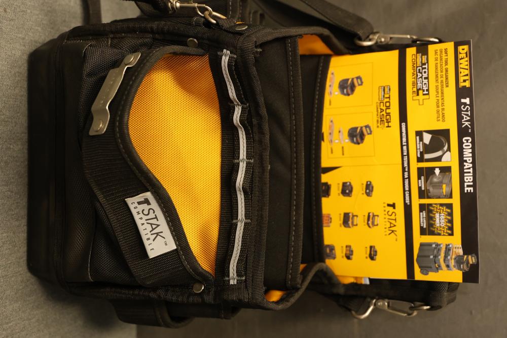 DeWalt DWST17624 TSTAK Soft Tool Organizer, Maxpower Waterproof Portable Tool Bag, Klein Tools VDV770126 Carrying Case for Scout Pro 3 Tester and Locator Remotes, and MagnoGrip 006-611 Builders Tool Rig (missing the shoulder straps). Includes durable and specialized storage solutions for tools and accessories. Pickup only.