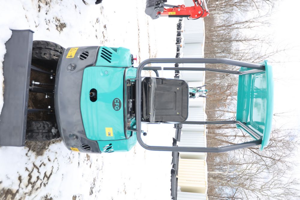 New 2025 CFG Industrial gas powered mini Excavator model QK16R with bucket, dozer blade, aux hydraulics, engine model R420, 920KG load, with canopy cover. Hours reading less than 1 hour.