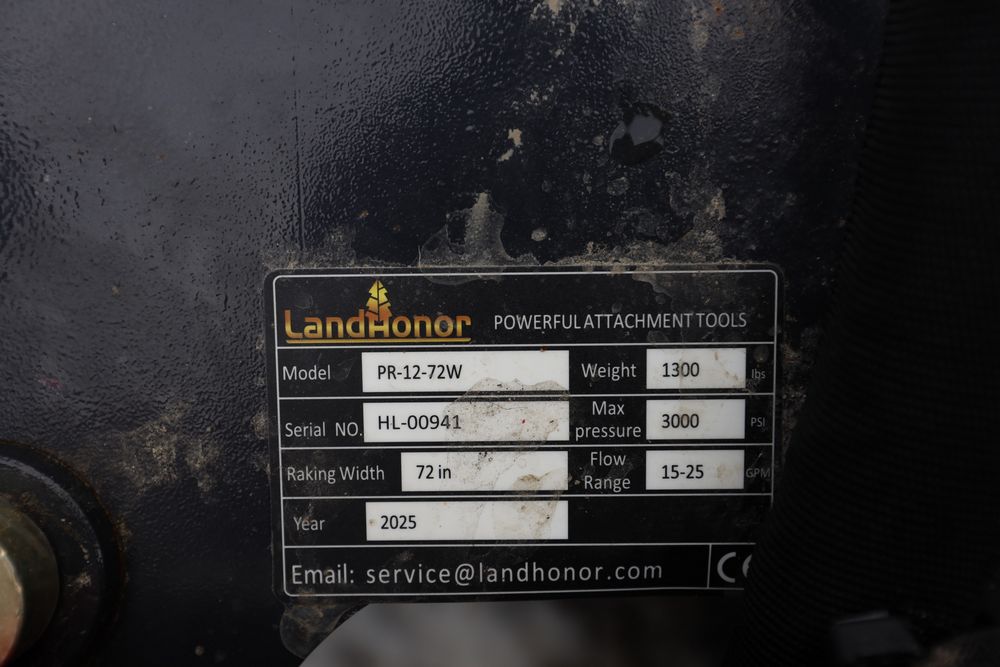 New 2026 Landhonor 72in skid steer power rake with 72in rake width and 320 r/min dump speed model:PR-12-72W.