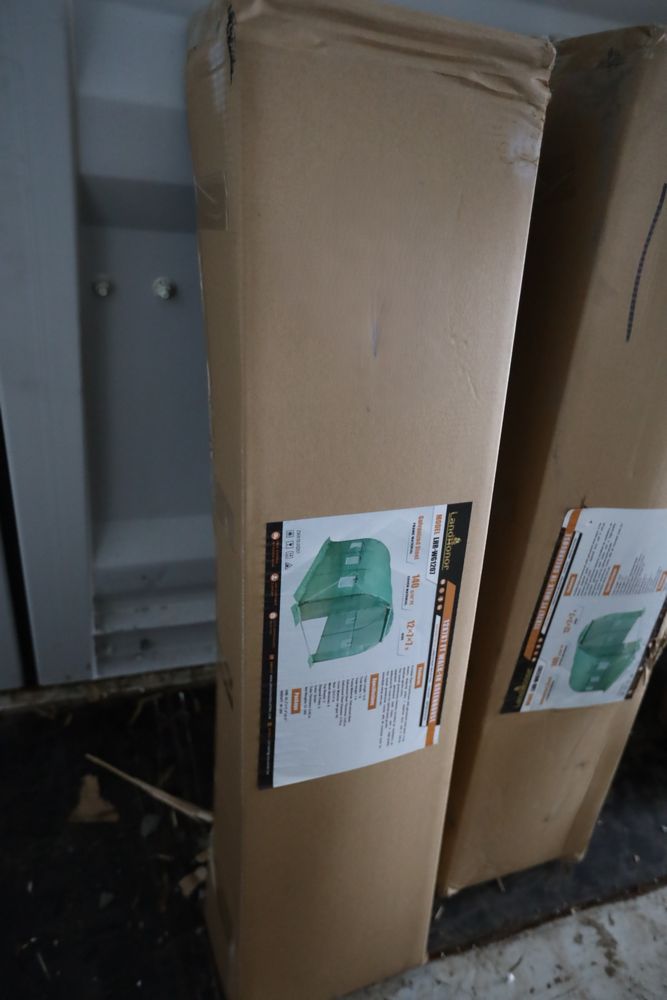Items include new 2026 Landhonor skid steer bale spears, pallet fork, utility hitch adaptor, three-point hitch adapter, tree puller, six-way dozer blade, screening bucket; skid steer loader; 20,000lbs. electric winch; Big Arm backhoe; 200lbs. cast iron anvil; 65' retractable air hose reel; retractable garden hose; hydraulic shop press; 8'x10' galvanized metal shed; 1" impact wrench; diesel fuel transfer pump w/ 49' hose reel; folding stool; rolling pneumatic stool; telescoping ladder; foldable wagon cart; walk-in greenhouse; two-ton lift hand chair lever hoist & more. Items are located in Pleasant Valley, NY. Preview is highly recommended.