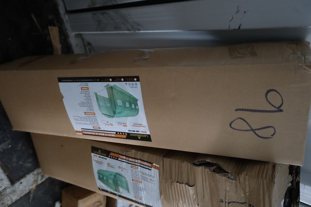 Items include new 2026 Landhonor skid steer bale spears, pallet fork, utility hitch adaptor, three-point hitch adapter, tree puller, six-way dozer blade, screening bucket; skid steer loader; 20,000lbs. electric winch; Big Arm backhoe; 200lbs. cast iron anvil; 65' retractable air hose reel; retractable garden hose; hydraulic shop press; 8'x10' galvanized metal shed; 1" impact wrench; diesel fuel transfer pump w/ 49' hose reel; folding stool; rolling pneumatic stool; telescoping ladder; foldable wagon cart; walk-in greenhouse; two-ton lift hand chair lever hoist & more. Items are located in Pleasant Valley, NY. Preview is highly recommended.