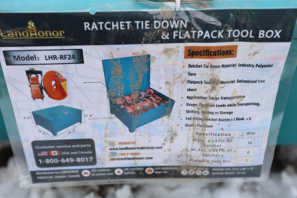 New 2026 Landhonor ratchet tie down and flat pack tool box model LHR-RF24, with 16 2inX27ft 5T Ratchets and eight 1.5inX27ft 3T Ratchets.