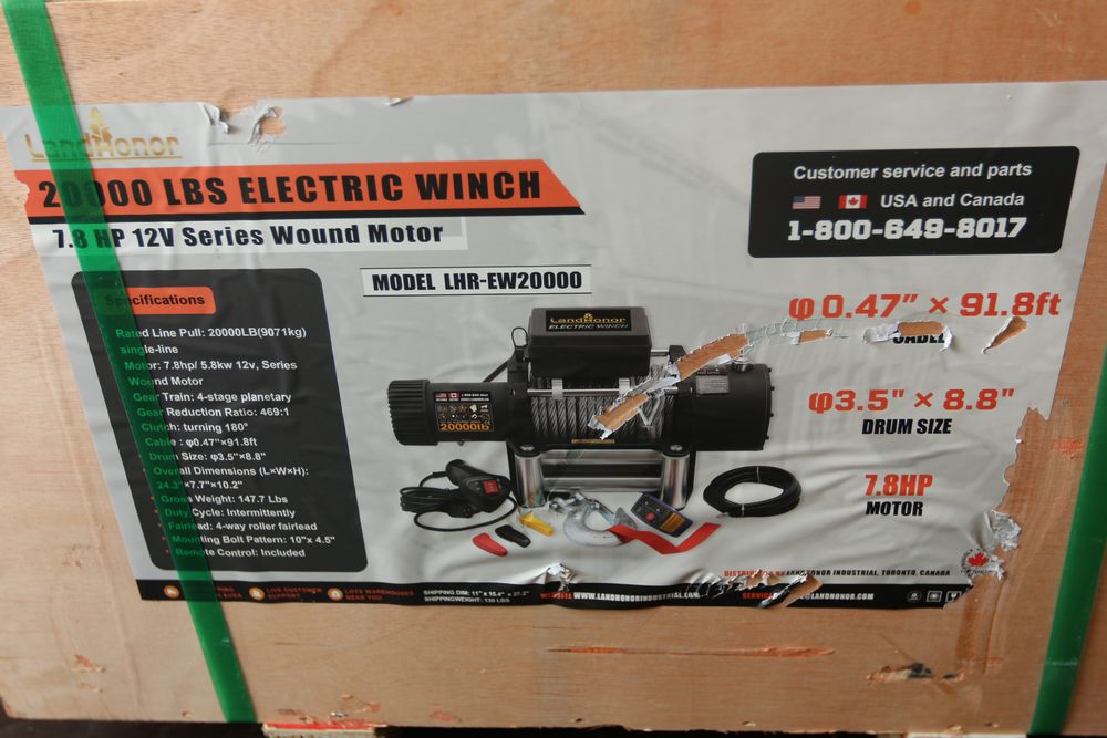 New 2026 Landhonor 20000LBS electric winch with 7.8 HP 12V series wound motor model:LHR-EW20000.