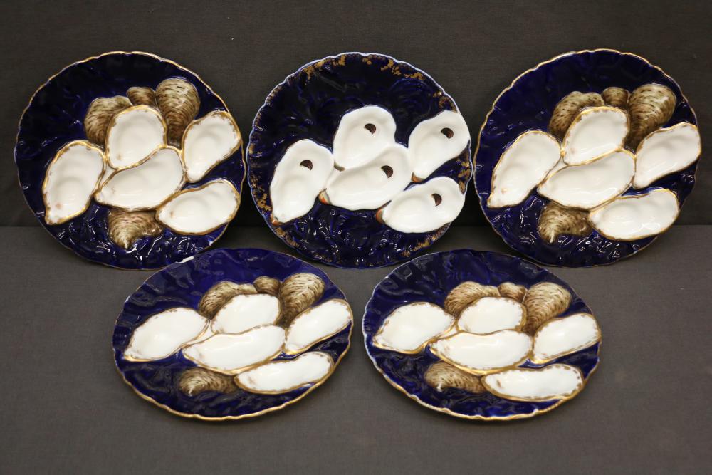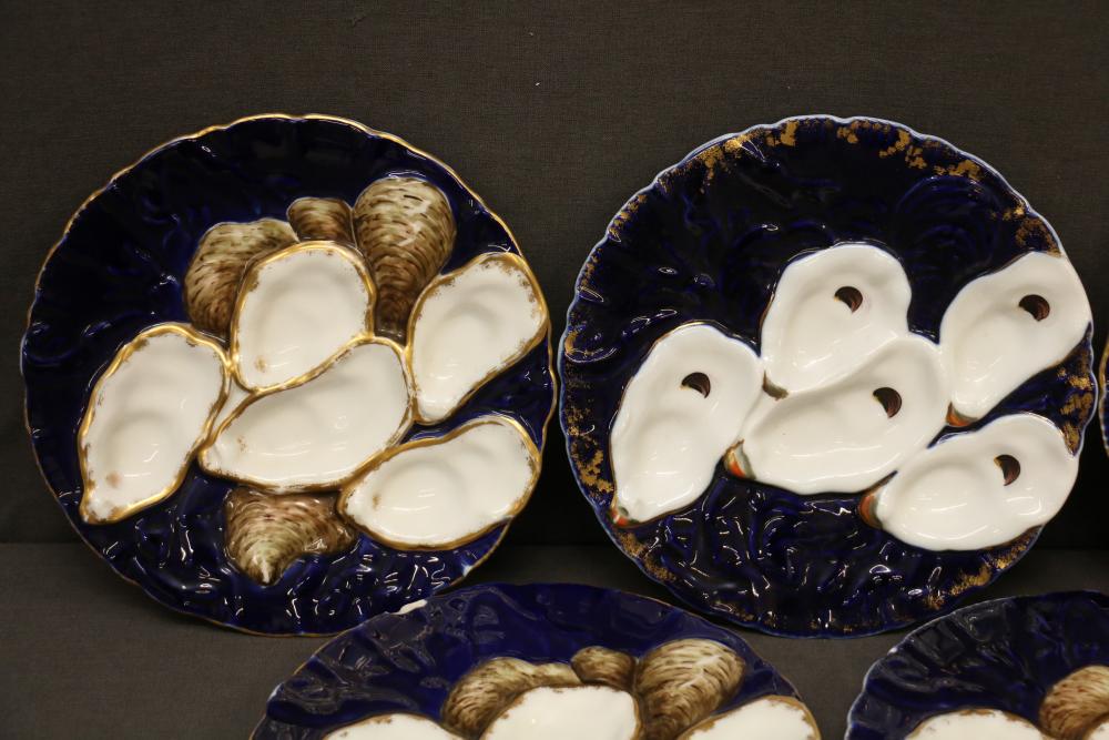 Limoges China Set With Oyster Plates. Includes cups, saucers, plates, bowls, serving pieces, teapots, creamers, and a set of oyster plates with a shell design. Pickup only.