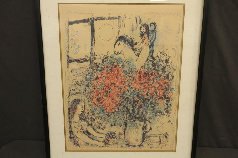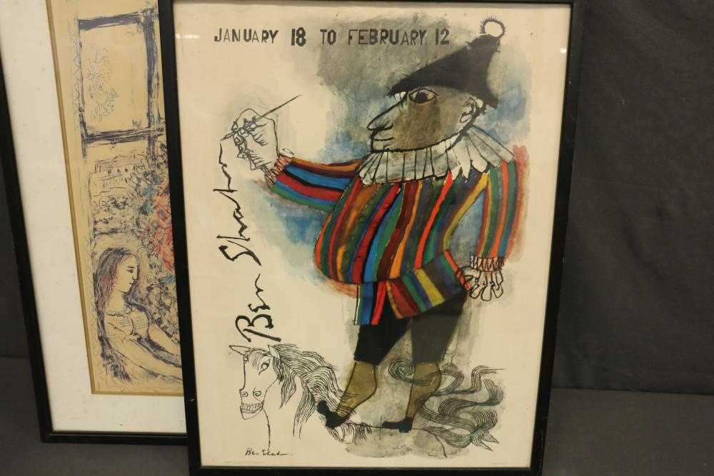 Four Framed Art Pieces from artists such as Ben Shahn, Marc Chagall, Man Ray, and a piece titled 'Adam and Eve.' Largest being (33" x 27") Pickup only.