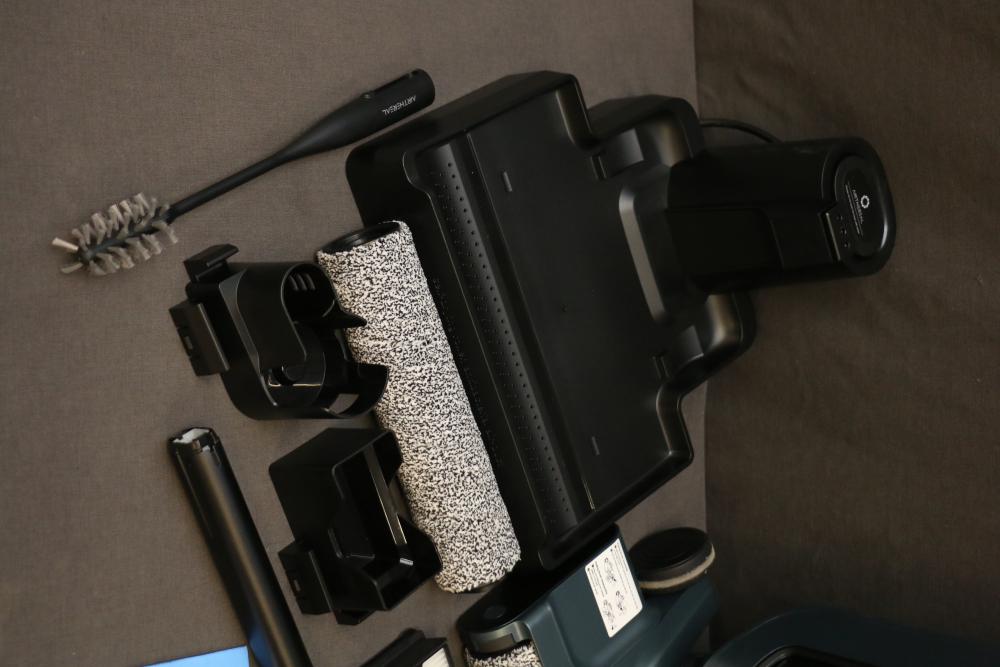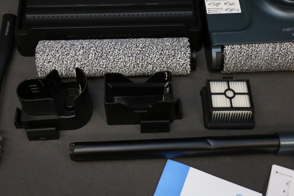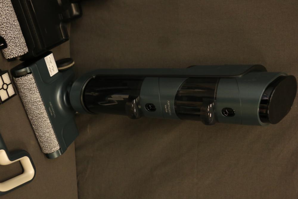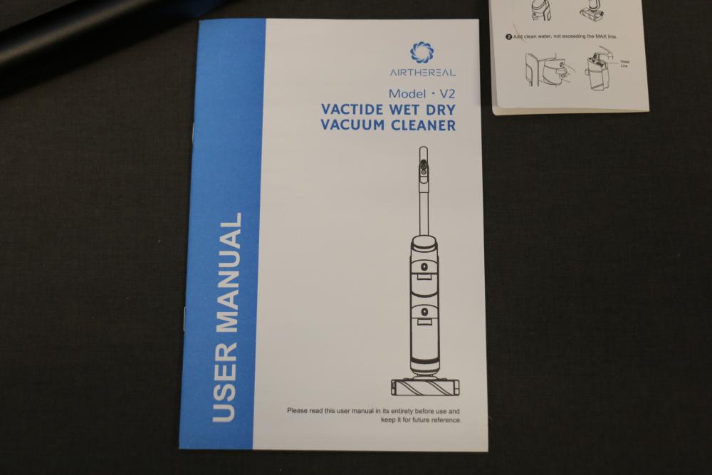 Airthereal VacTide V2 Wet Dry Vacuum Cleaner. Includes the vacuum cleaner body, roller brush heads, filters, handle, charger, and user manual. Pickup only.