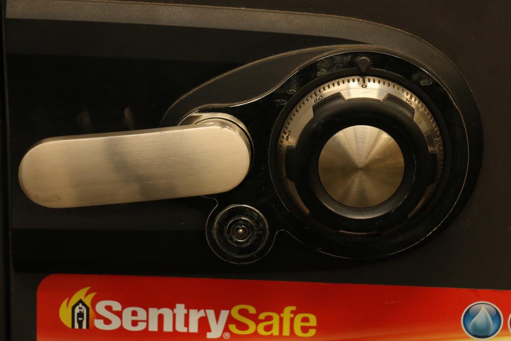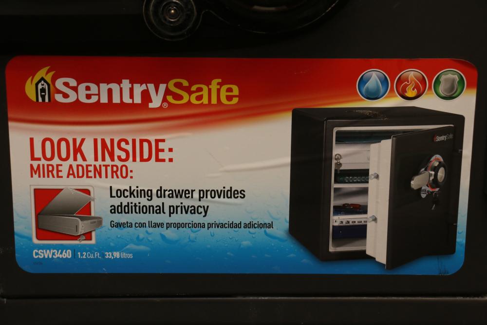 SentrySafe CSW3460 Fireproof and Waterproof Safe With Dial Lock. Unknown code and is locked. Damage to underside. (17.75"H x 16.25"L x 17"W) Pickup only.