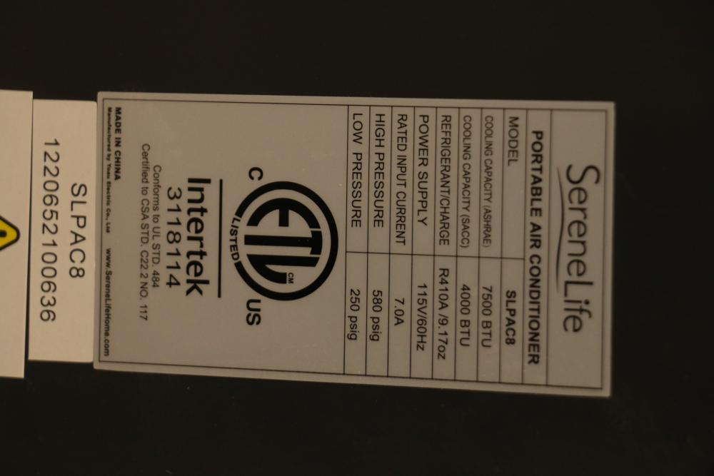 SereneLife SLPAC8 Portable Air Conditioner with Accessories. Includes the air conditioner, exhaust hose, and window fitting. Pickup only.