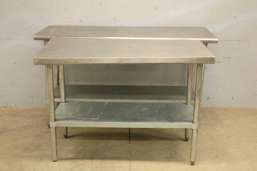 Stainless Steel Food Prep Work Tables Each With Lower Shelf. Largest being (60"L x 24"W x 34"H). Pickup only.