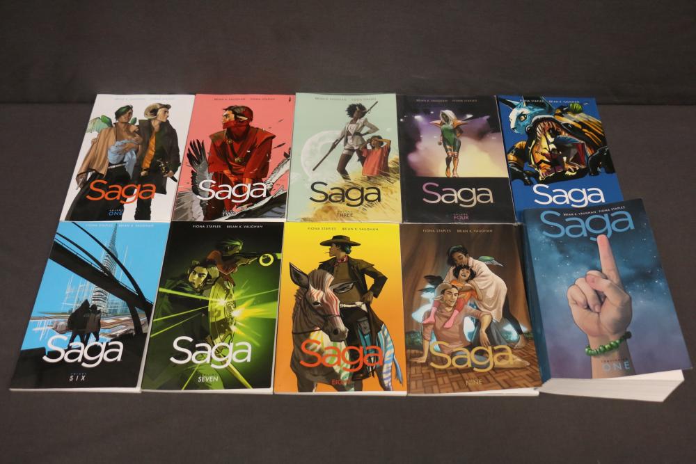 "Saga" Volumes 1-9 Softcover Graphic Novels by Brian K. Vaughan and Fiona Staples. Pickup only.