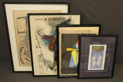 Four Framed Art Pieces from artists such as Ben Shahn, Marc Chagall, Man Ray, and a piece titled 'Adam and Eve.' Largest being (33" x 27") Pickup only.