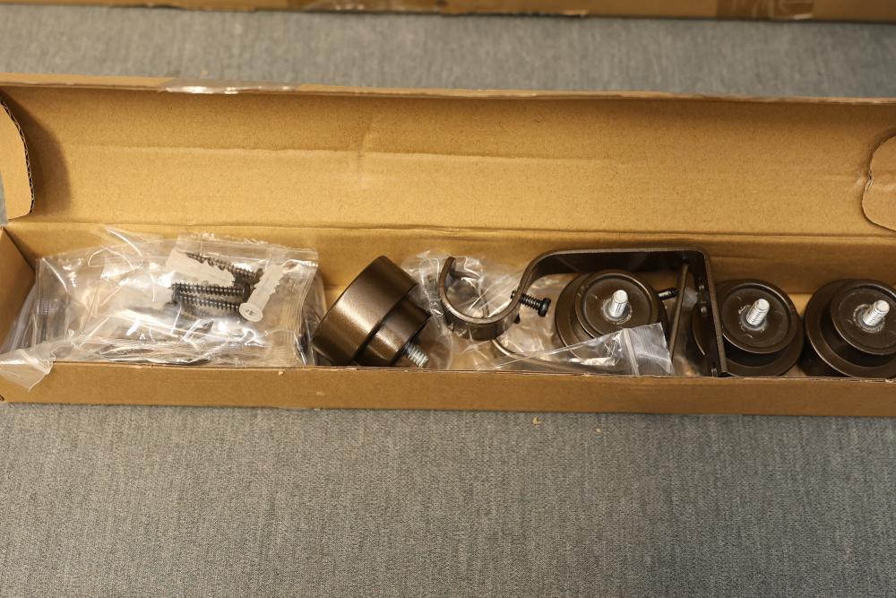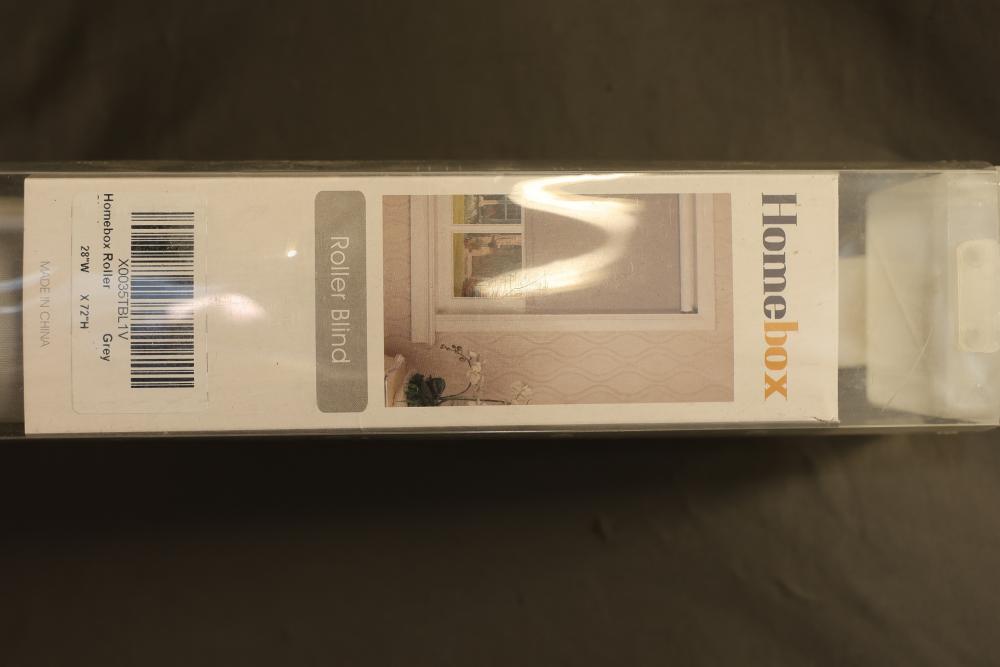 Homebox Roller Blind 28 Inches Wide by 72 Inches High and Hei!Dear 2-Pack Bronze Curtain Rod Extendable 28 to 44 Inches Long with a 1 Inch Diameter. Includes one roller blind with a compact design and two bronze curtain rods made from durable materials, complete with hardware. Pickup only.