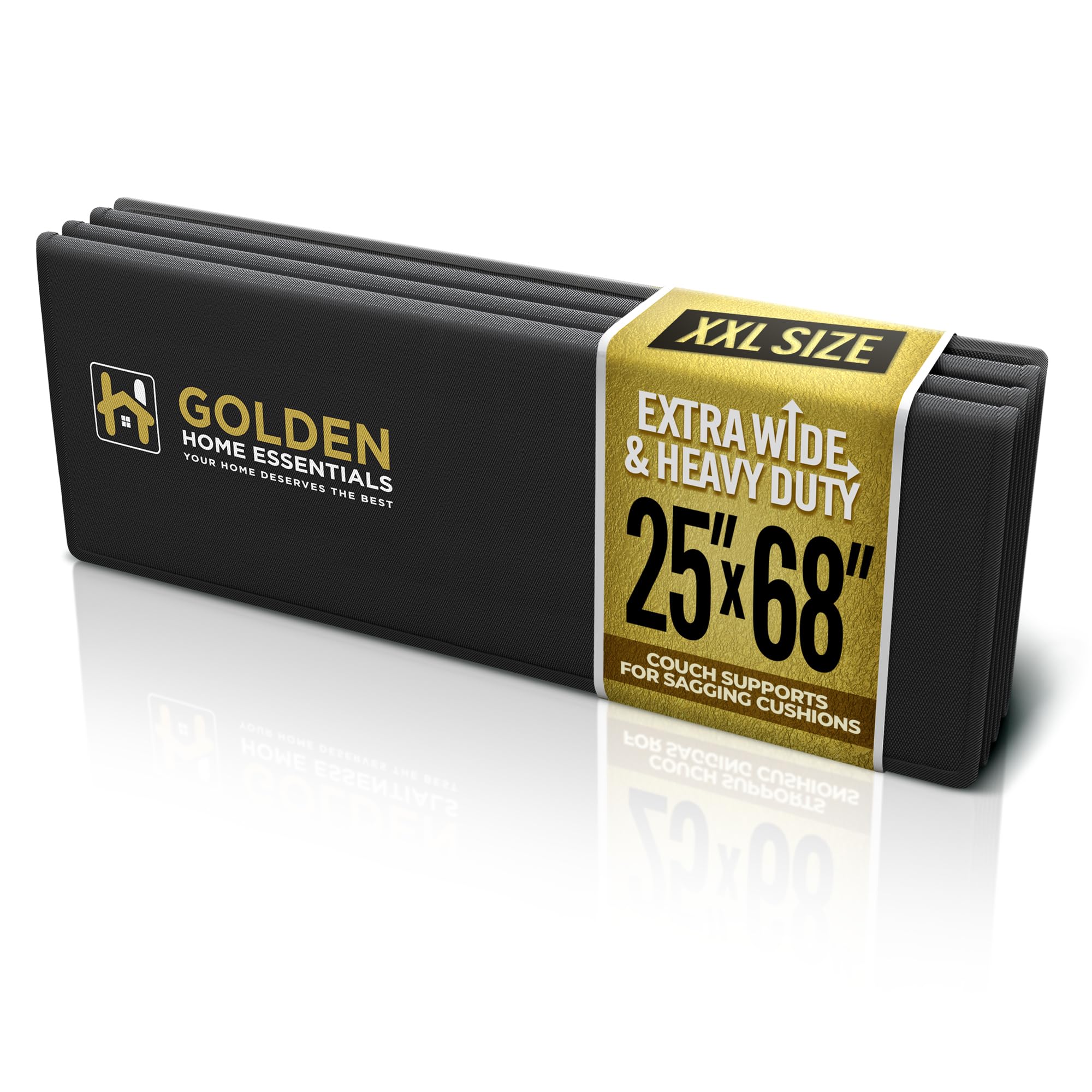 Golden Home Essentials Extra Large Couch Supports, 68x23 Inches. Designed to enhance posture by providing support and preventing sagging in sofas and couches. Made with extra-strong, high-density wood composite boards and an industry-standard Oxford material cover for maximum durability. Features rounded edges to protect cushions from damage. Stock photo displays 68 inches long by 25 inches wide but the actual measurements are 68 inches long by 23 inches wide. Pickup only.