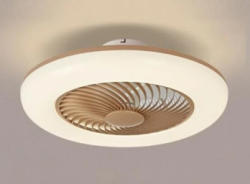 LITTARBY 7888-Golden 22 Inch Enclosed Bladeless Ceiling Fan with LED Lights, Remote, and Golden Trim. Features a bladeless design, integrated LED lighting, golden trim detail, and a remote control for convenience. Pickup only.