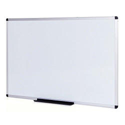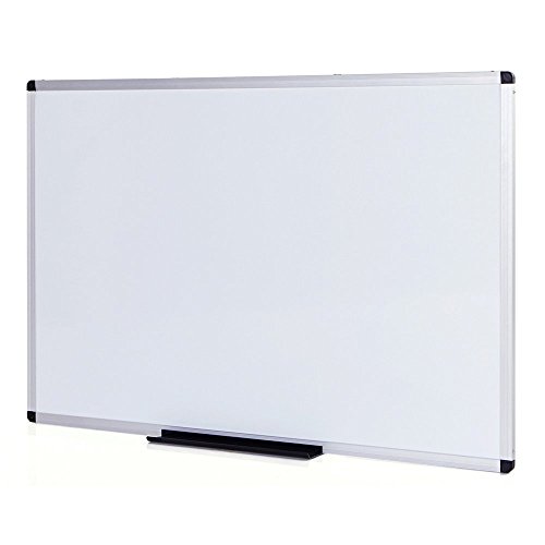 VIZ-PRO WB1290L Magnetic Dry Erase Whiteboard 48 Inches Long by 36 Inches Wide. Features a lacquer surface and an aluminum frame. Includes mounting instructions and accessories as shown. Item measures 48 inches in length, 36 inches in width, and weighs 12 lbs. New in its original packaging. Pickup only.