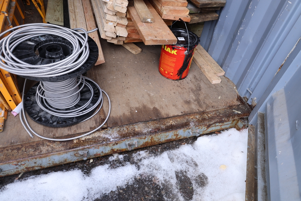 Items include 2014 Cam Superline trailer; salt storage shed structure; 20' steel shipping storage container; 1000 liter IBC tote tank; Western Pro Plus straight blade snow plow; black chain link fencing & more. Items are located in Peekskill, NY.