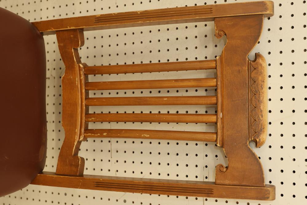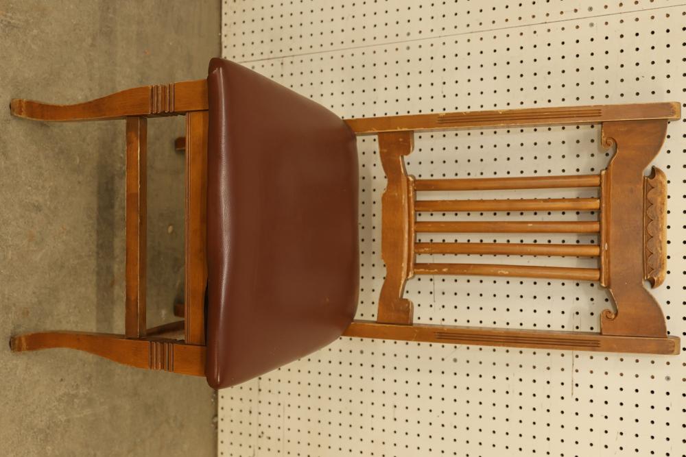 Items are from the Mohonk Mountain House & are pressed back oak upholstered/padded dining chairs. Items are located in Pleasant Valley, NY.