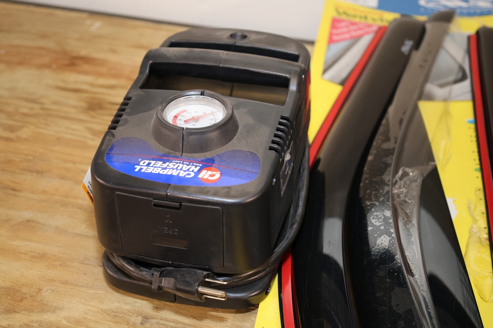 Misc. auto equipment , Rain guards for 17-18 Ford F250,F350,F450 Super Duty, car jacks, tire pump.