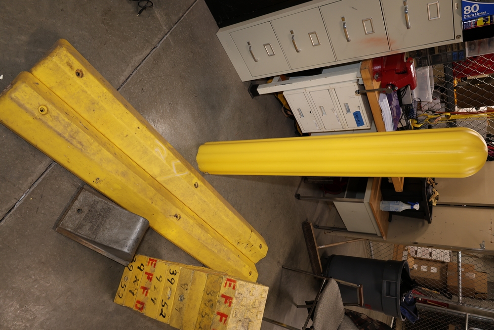 Misc. equipment, (1) ballard, (2) bumpers, (1) rope, (1) wheel chock, (9) plastic blocks.