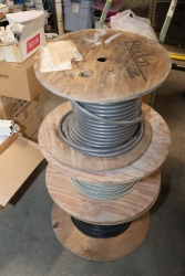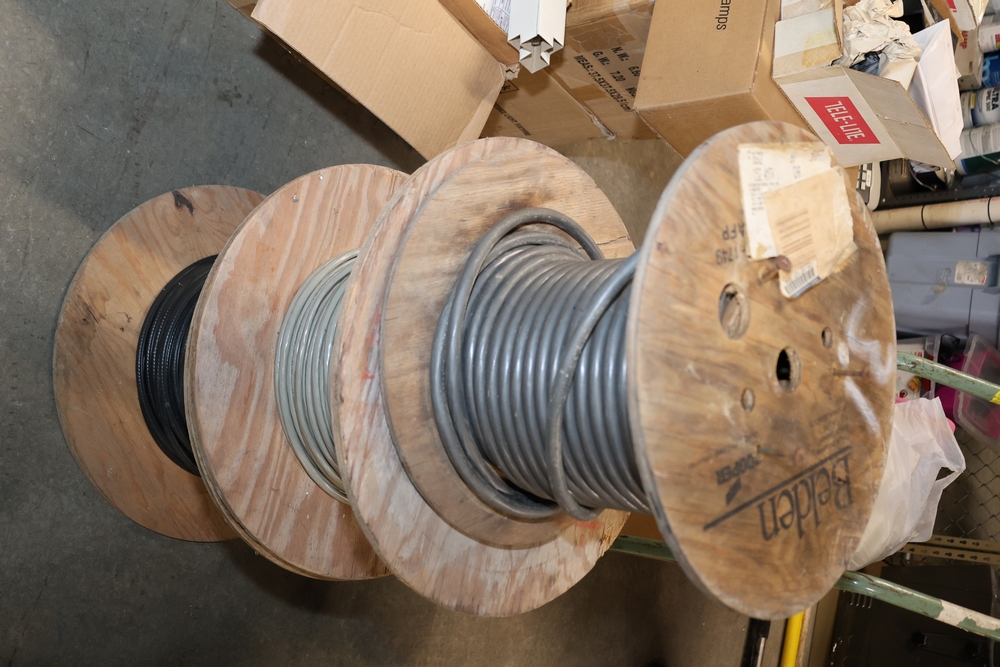 (3) spools of misc wire. (1) hand truck.