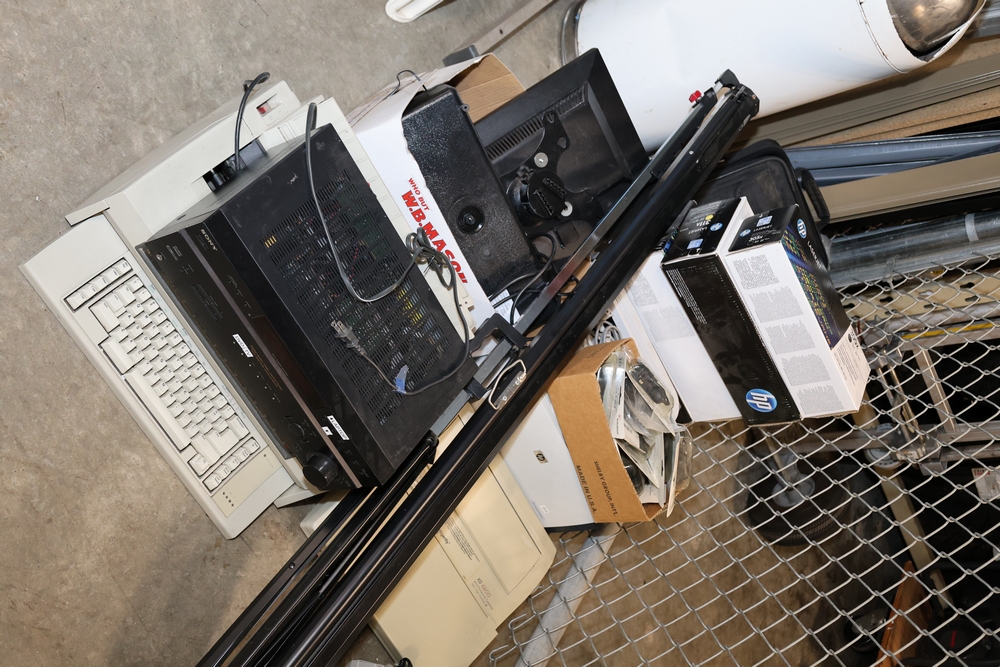 Misc. Electronic equipment, (1) HP printer. (1) laminator. (2) typewriter. (1) automatic letter opener. Misc. printer ink. PC screen, misc wires.