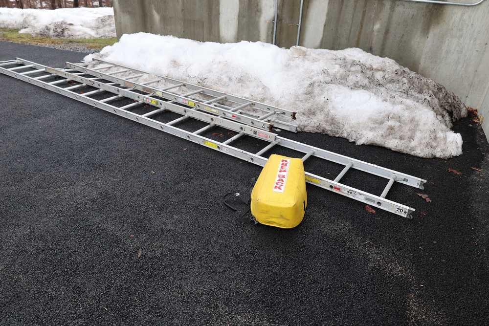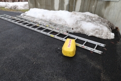 Ladders, (2) 12' roof ladders, (1) 20' roof ladders. (1) ladder boot. Has not been used or touched in a few years.