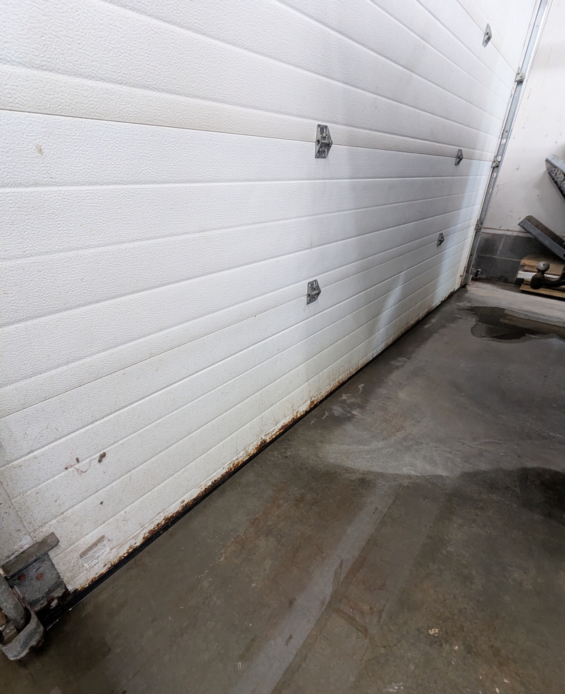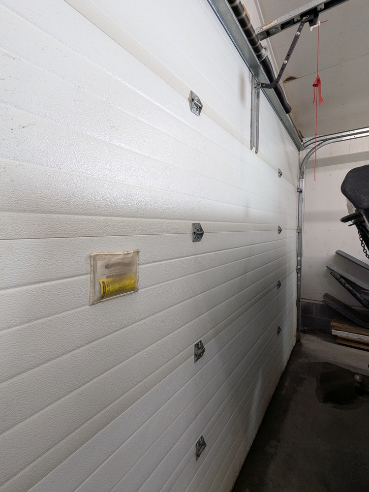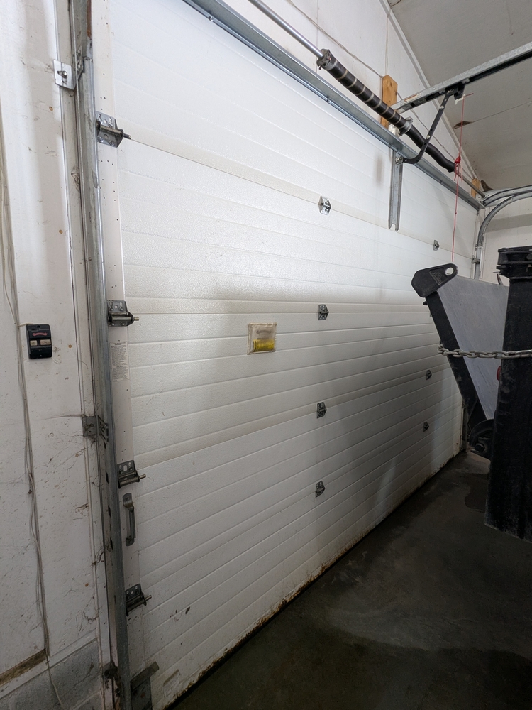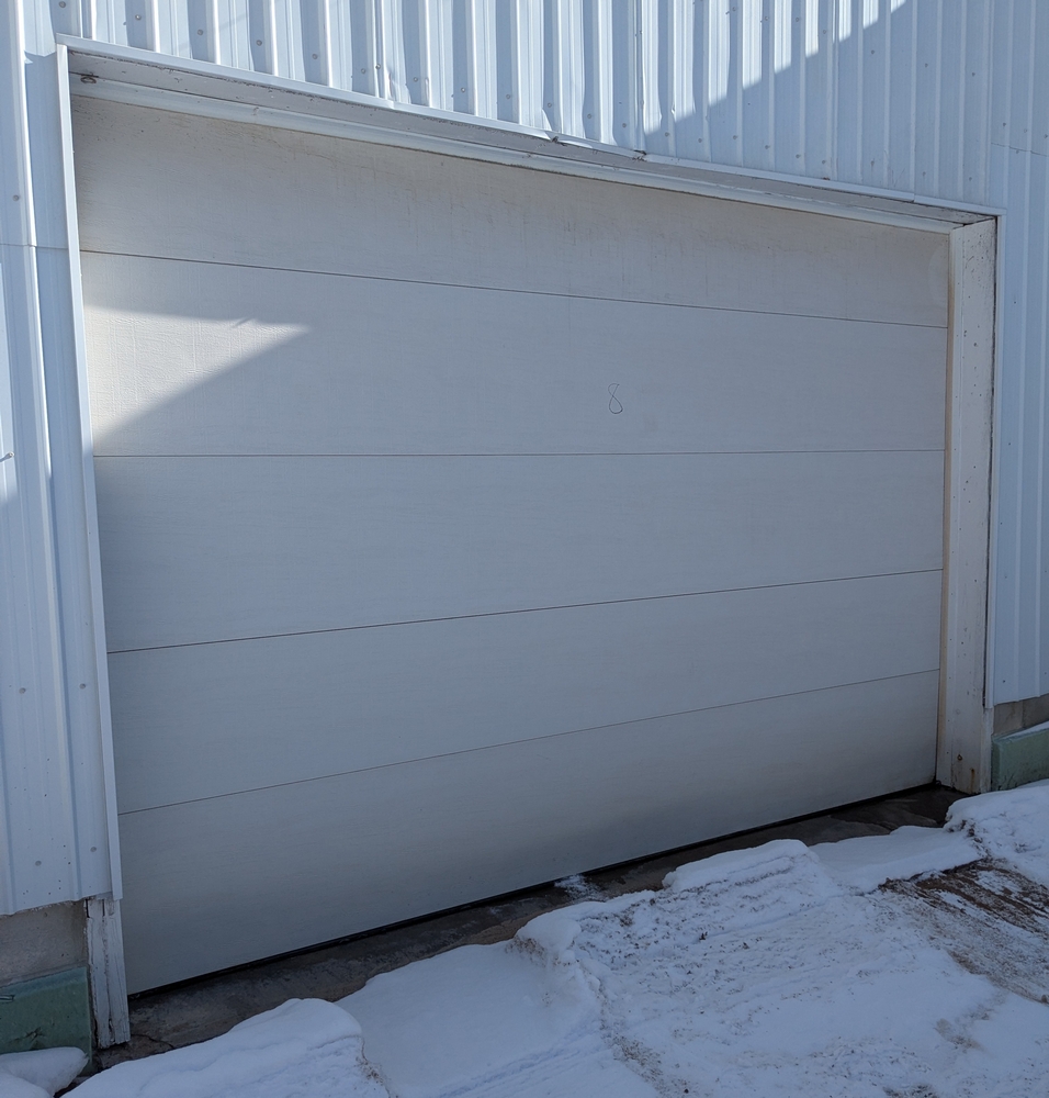 Insulated Overhead Door No. 8; 10ftx12ft. Lot includes door, opener, track and springs. Door is uninstalled.