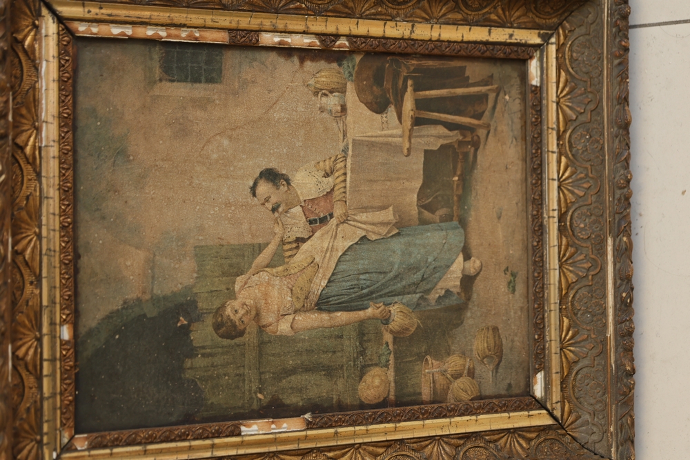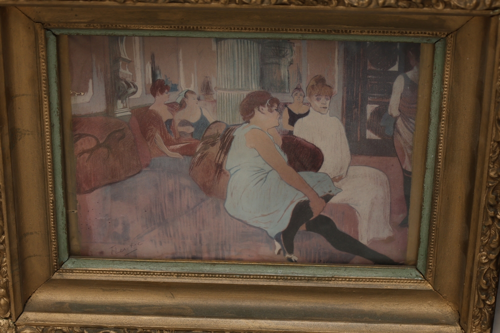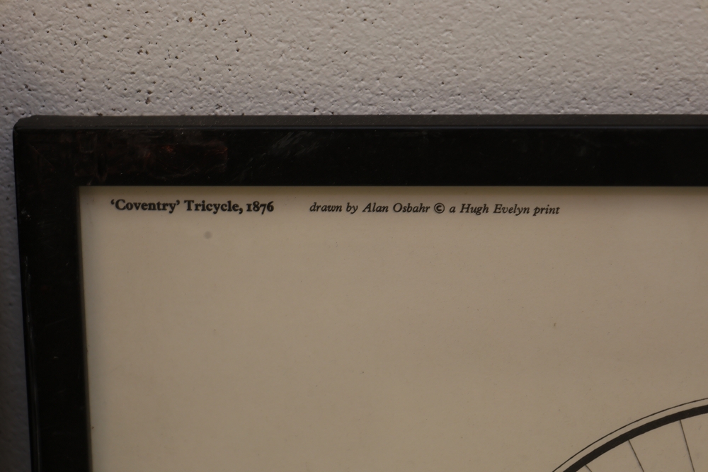Lot of assorted framed artwork and photographs including prints, portraits, and decorative framed pieces; subjects include figural scenes, portrait photographs, a bicycle illustration, a tango poster print, and other assorted images in various frames and sizes.