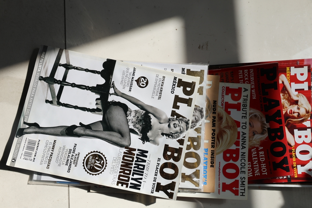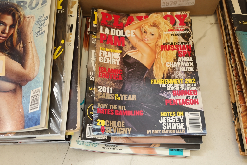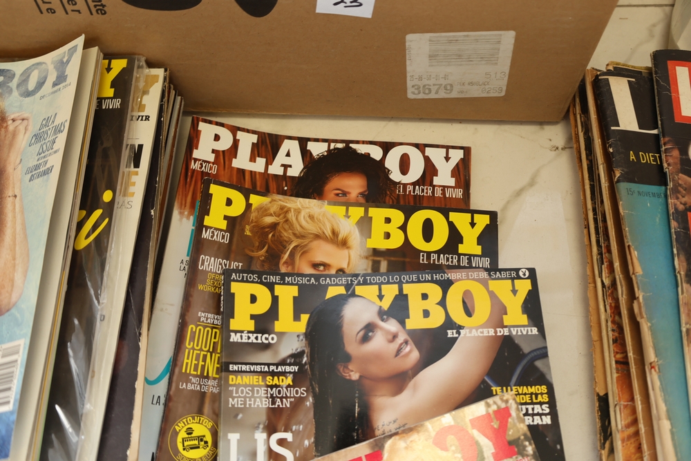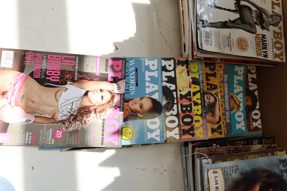 Group of approx 61 Playboy magazines including vintage and modern issues, including examples from the 1960s and 1970s along with later issues and Playboy Mexico editions.