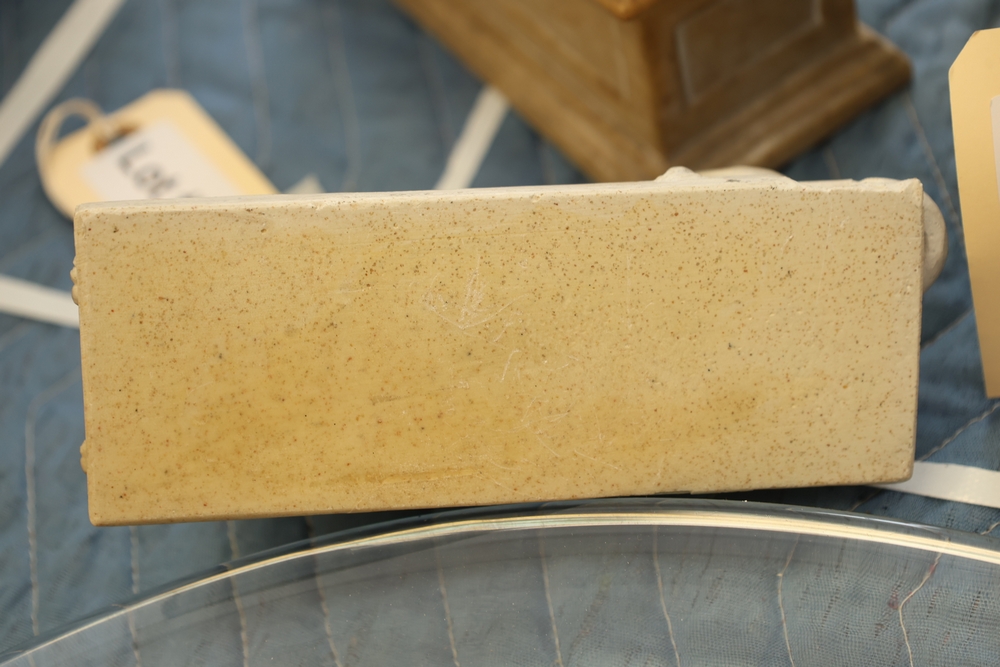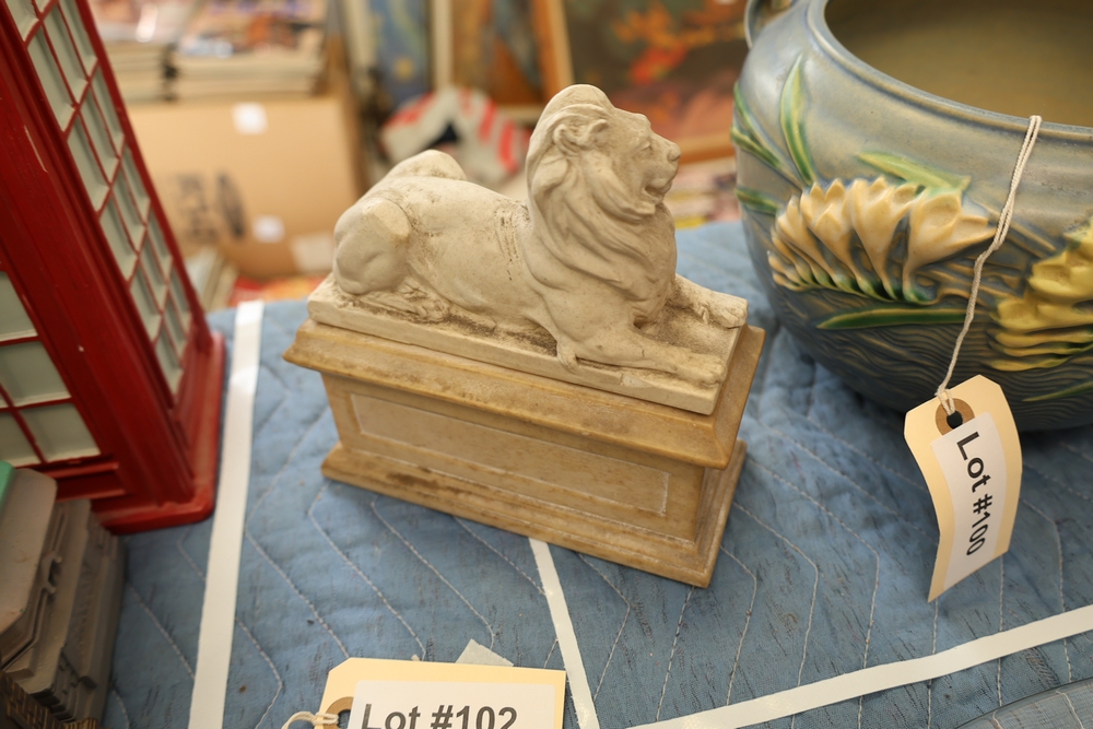 Lion figure on rectangular pedestal base, underside labeled Exclusively Licensed Authentic Reproductions by Alva Museum Replicas Inc., New York, N.Y.