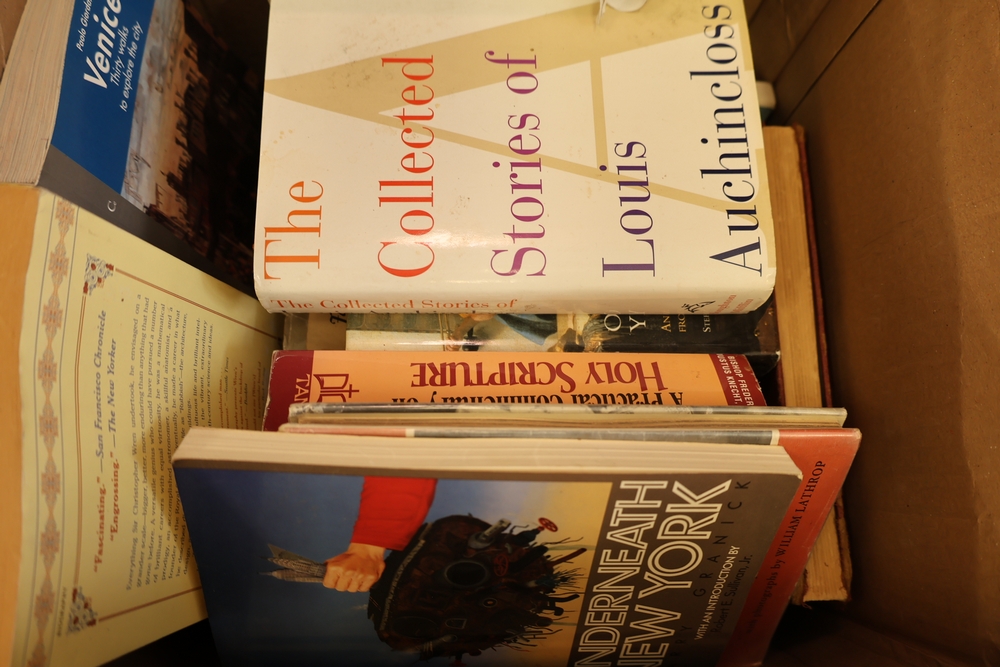 Items include Framed Robert Fleisher "Proof" print depicting urban street scene; Roseville pottery; Denoyer-Geppert human anatomy torso; Bose AV3-2-1 III Media Center; Polk Audio bookshelf speakers; decorative collector's plates; Superman, Disney characters & Mickey Mouse collectibles; framed Star Wars displays; large amount of wall art; Playboy magazines; Films in Review magazines; camera equipment, binoculars & optics; Danbury Mint architectural building models; Kershaw SpeedSafe knife; Murano style large circular art glass platter; NJ Transit buses, & other company's model buses; costume jewelry; large Limoges France porcelain covered urn; Lionel Grand Central Terminal architectural model; brass beverage tap assemblies; large collection of baseball trading cards; vintage newspapers/magazines; vintage table lamp & more. Items are located in New York, NY.