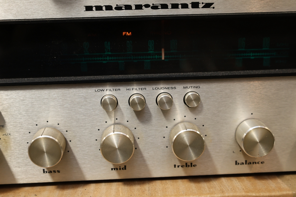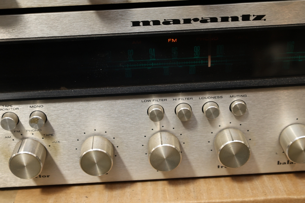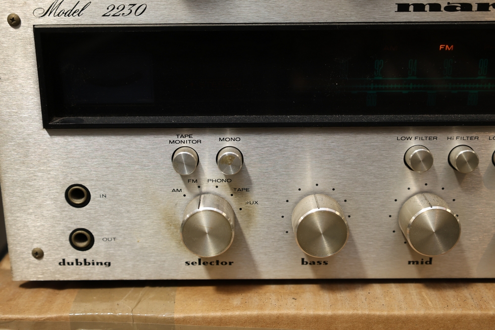Marantz Model 2230 stereophonic receiver with brushed aluminum faceplate, analog FM/AM tuning dial, gyro-touch tuning control, and front panel selector and tone controls.