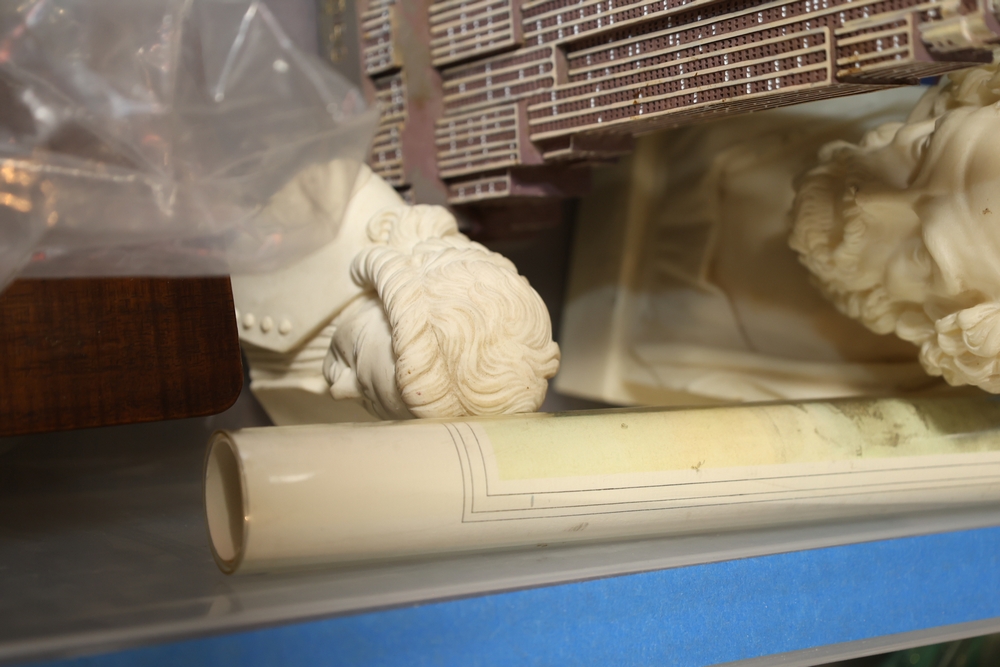 Items include Framed Robert Fleisher "Proof" print depicting urban street scene; Roseville pottery; Denoyer-Geppert human anatomy torso; Bose AV3-2-1 III Media Center; Polk Audio bookshelf speakers; decorative collector's plates; Superman, Disney characters & Mickey Mouse collectibles; framed Star Wars displays; large amount of wall art; Playboy magazines; Films in Review magazines; camera equipment, binoculars & optics; Danbury Mint architectural building models; Kershaw SpeedSafe knife; Murano style large circular art glass platter; NJ Transit buses, & other company's model buses; costume jewelry; large Limoges France porcelain covered urn; Lionel Grand Central Terminal architectural model; brass beverage tap assemblies; large collection of baseball trading cards; vintage newspapers/magazines; vintage table lamp & more. Items are located in New York, NY.