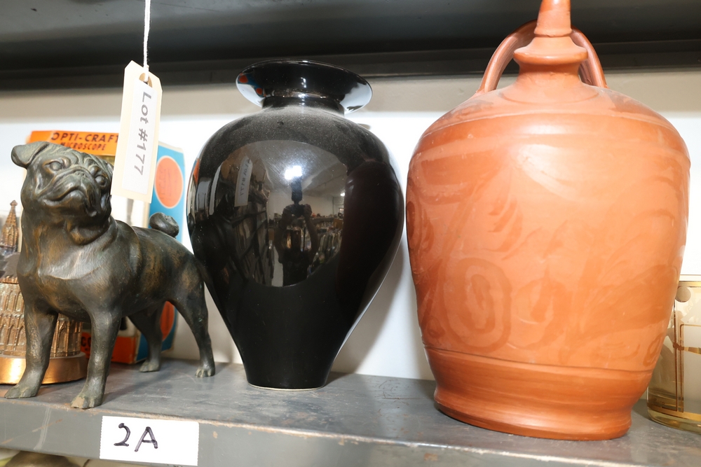 Items include Framed Robert Fleisher "Proof" print depicting urban street scene; Roseville pottery; Denoyer-Geppert human anatomy torso; Bose AV3-2-1 III Media Center; Polk Audio bookshelf speakers; decorative collector's plates; Superman, Disney characters & Mickey Mouse collectibles; framed Star Wars displays; large amount of wall art; Playboy magazines; Films in Review magazines; camera equipment, binoculars & optics; Danbury Mint architectural building models; Kershaw SpeedSafe knife; Murano style large circular art glass platter; NJ Transit buses, & other company's model buses; costume jewelry; large Limoges France porcelain covered urn; Lionel Grand Central Terminal architectural model; brass beverage tap assemblies; large collection of baseball trading cards; vintage newspapers/magazines; vintage table lamp & more. Items are located in New York, NY.