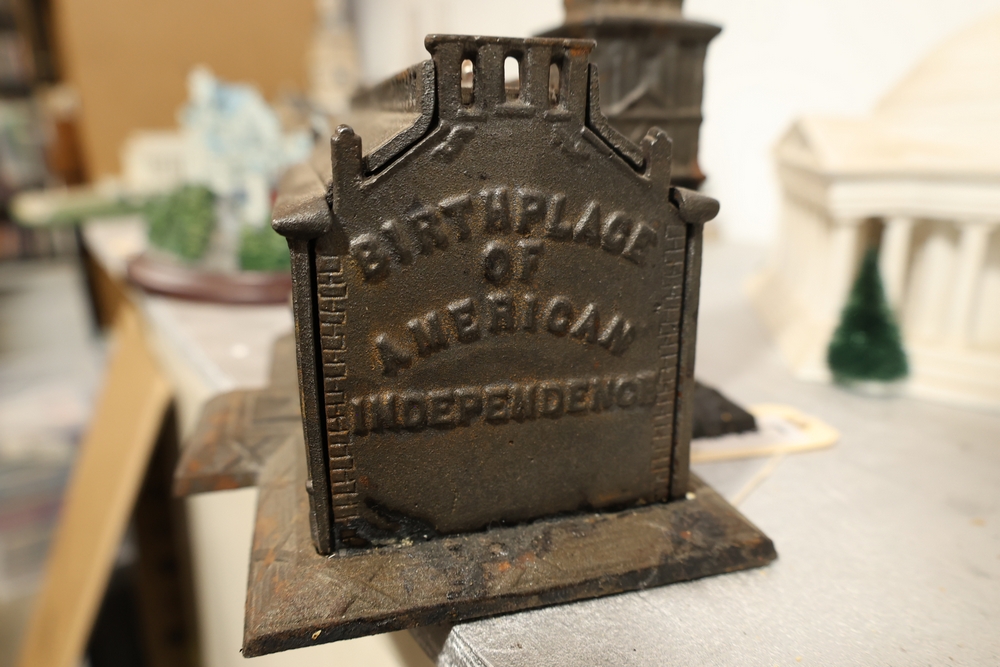 Cast iron “Liberty Proclaimed July 4, 1776 – Birthplace of American Independence” Independence Hall building still bank.