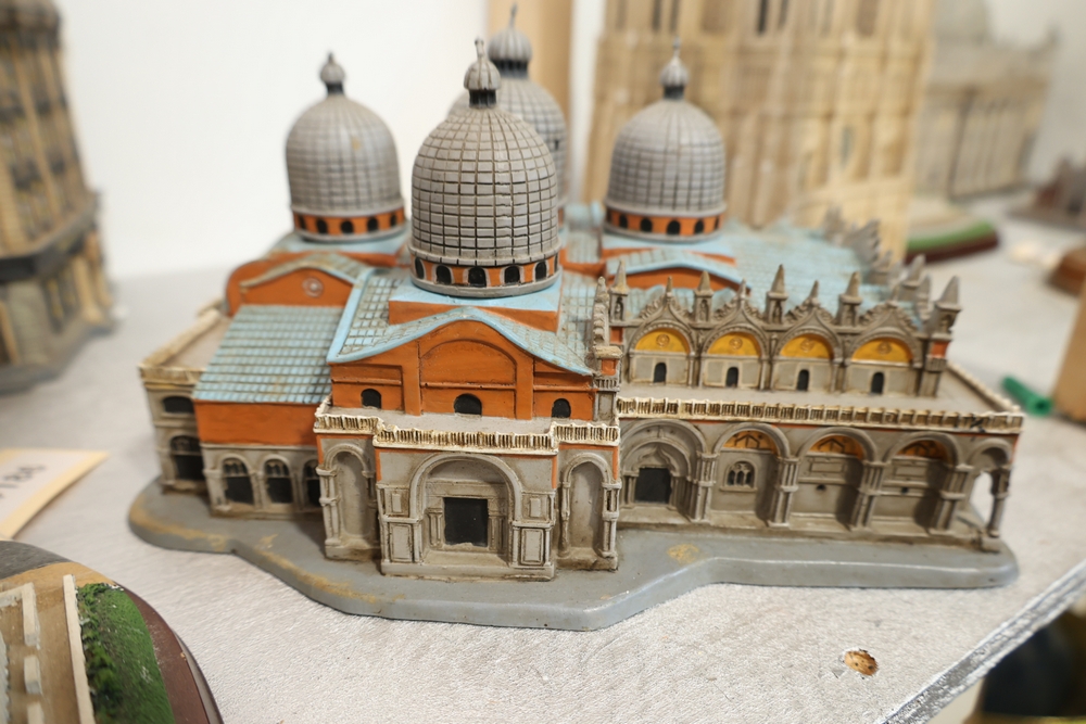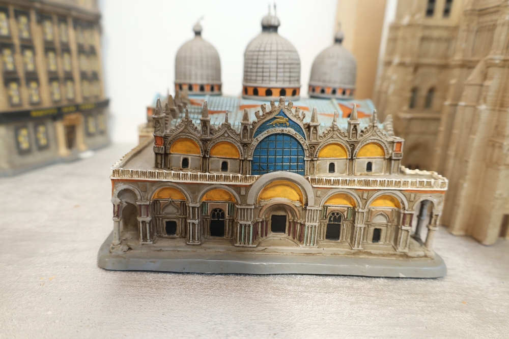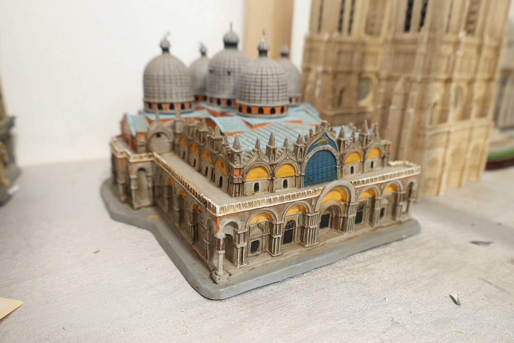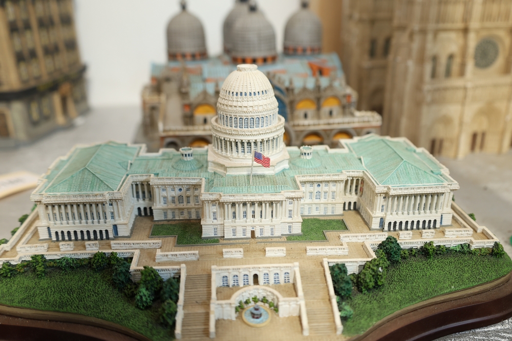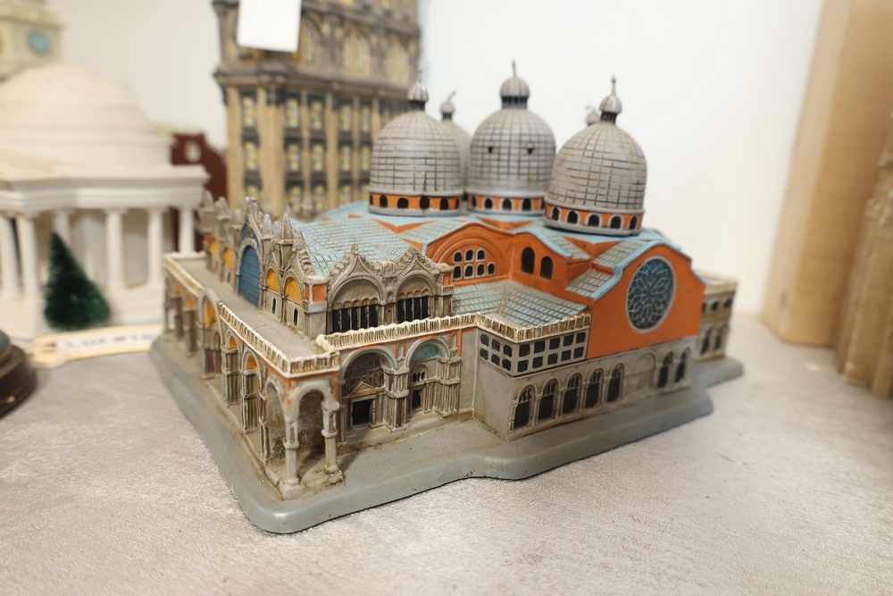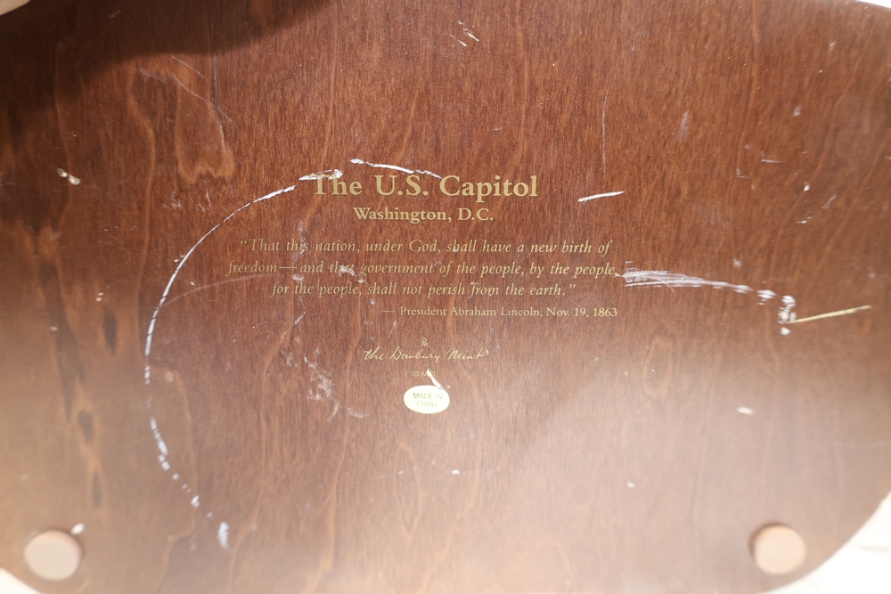 Danbury Mint “The U.S. Capitol, Washington, D.C.” architectural model on shaped wood base with printed Gettysburg Address quotation and Made in China label to underside, together with architectural building model labeled “Custom Designed Products for The Venetian Las Vegas” with winged lion logo and handwritten number 144/240.
