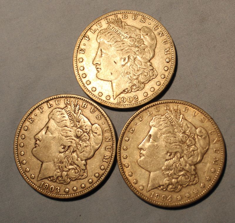 Six Morgan Silver Dollars including four 1902 (one "O"), a 1903 and a 1904. Shipping is available for this item.