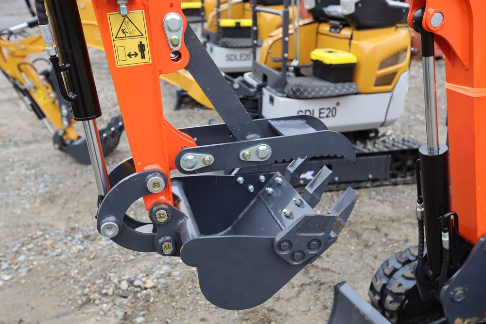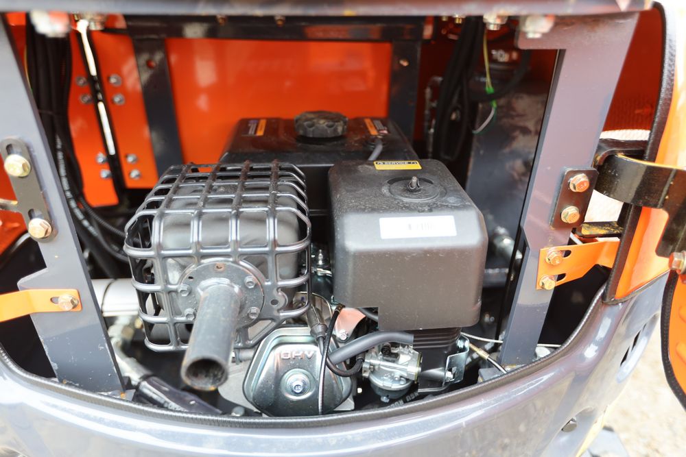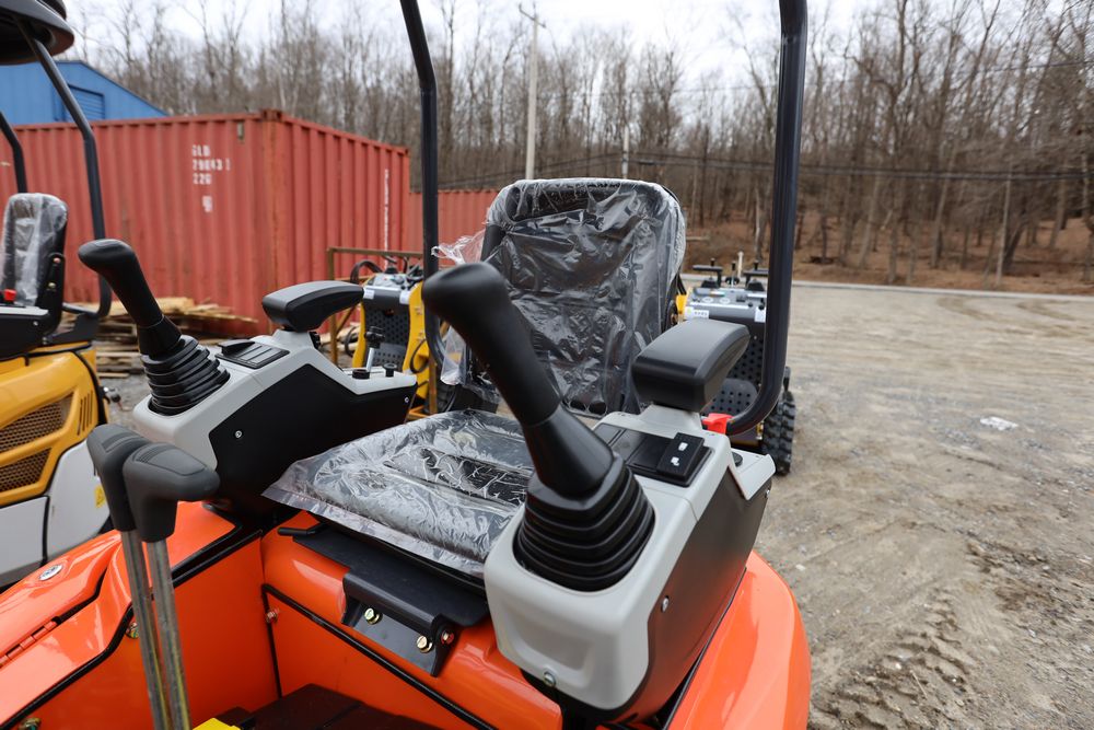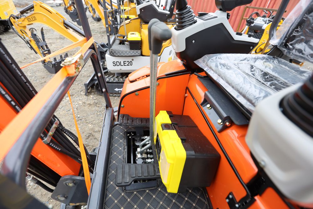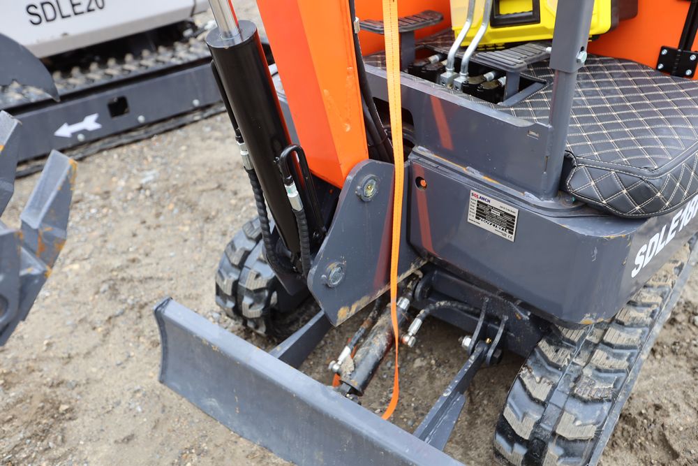 New 2025 mini excavator model SDLE18P with bucket, thumb, and RATO 420 gas engine. Hours reading less than 1 hour.