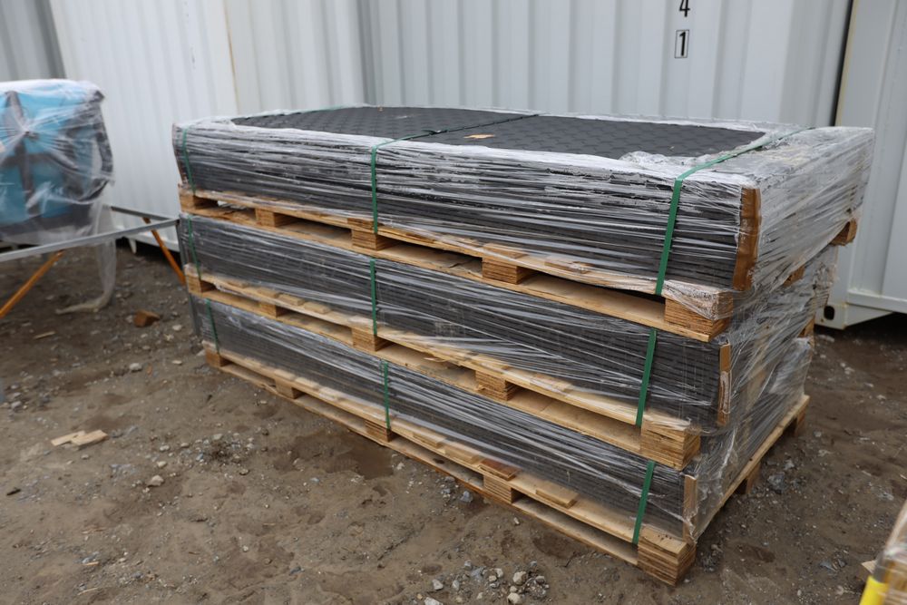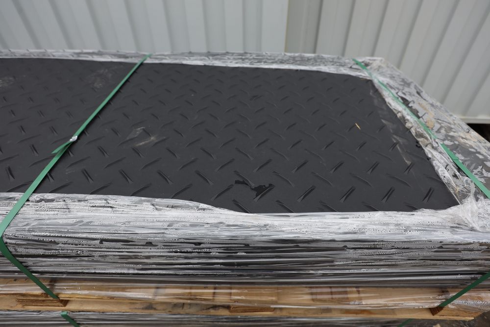 New 2025 ground protection mats model IRGPM with diamond plated smooth tread design. Total of 45 pcs. Dimensions are 4'Wx 8'Lx.05H" per mat.