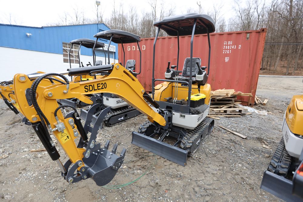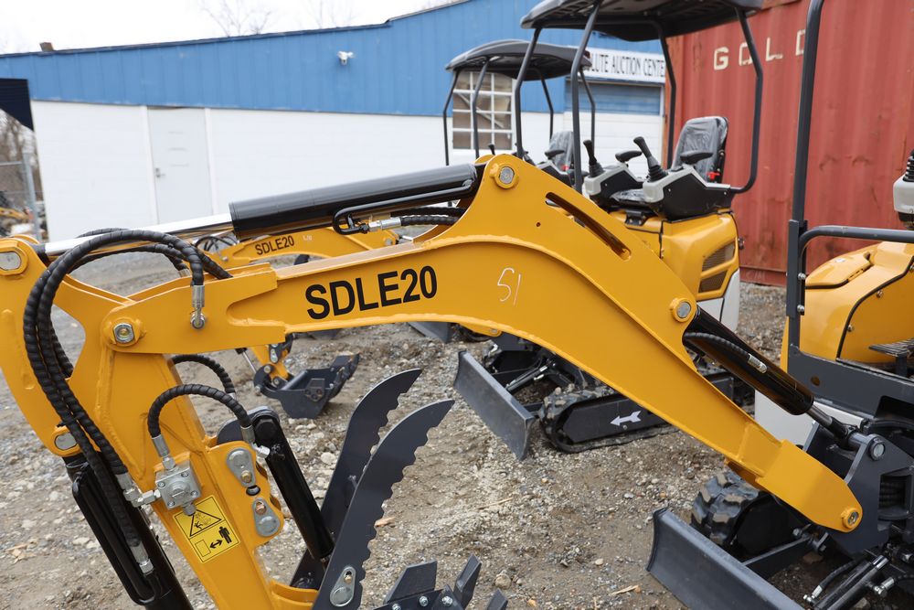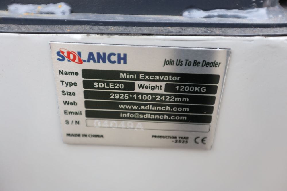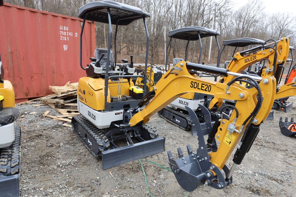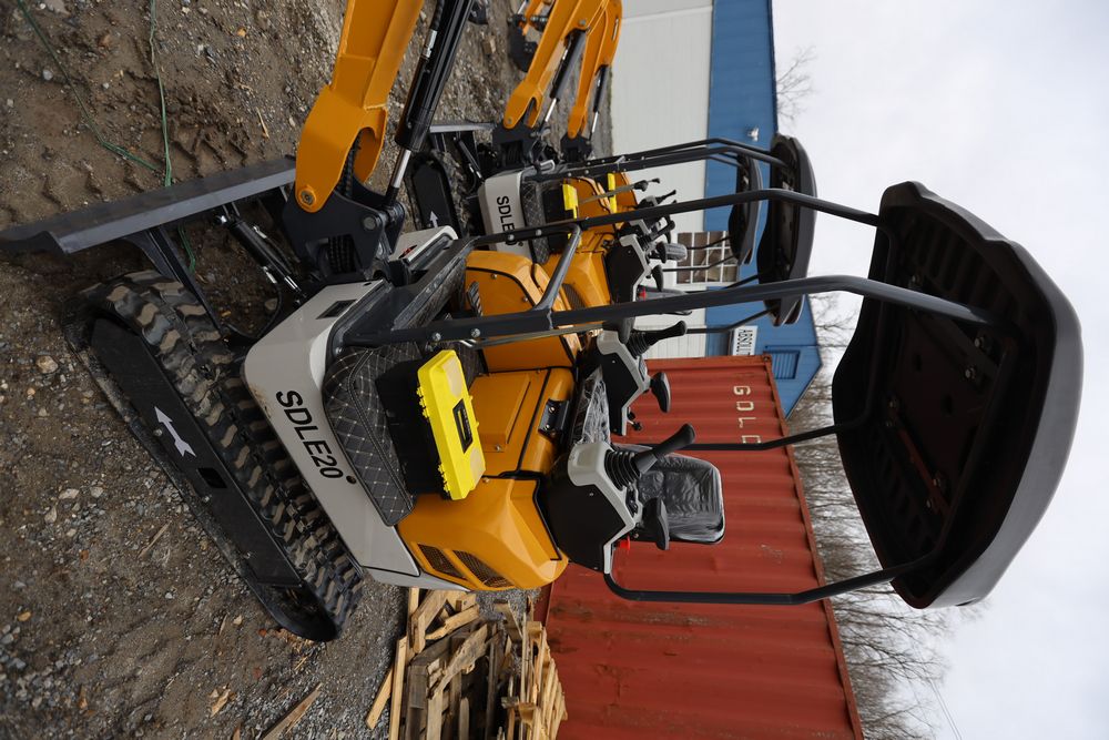 New 2025 SDLE20 Yanmar diesel mini excavator with hydraulic thumb clamp, swing boom, and dozer blade. Hours reading less than one hour.