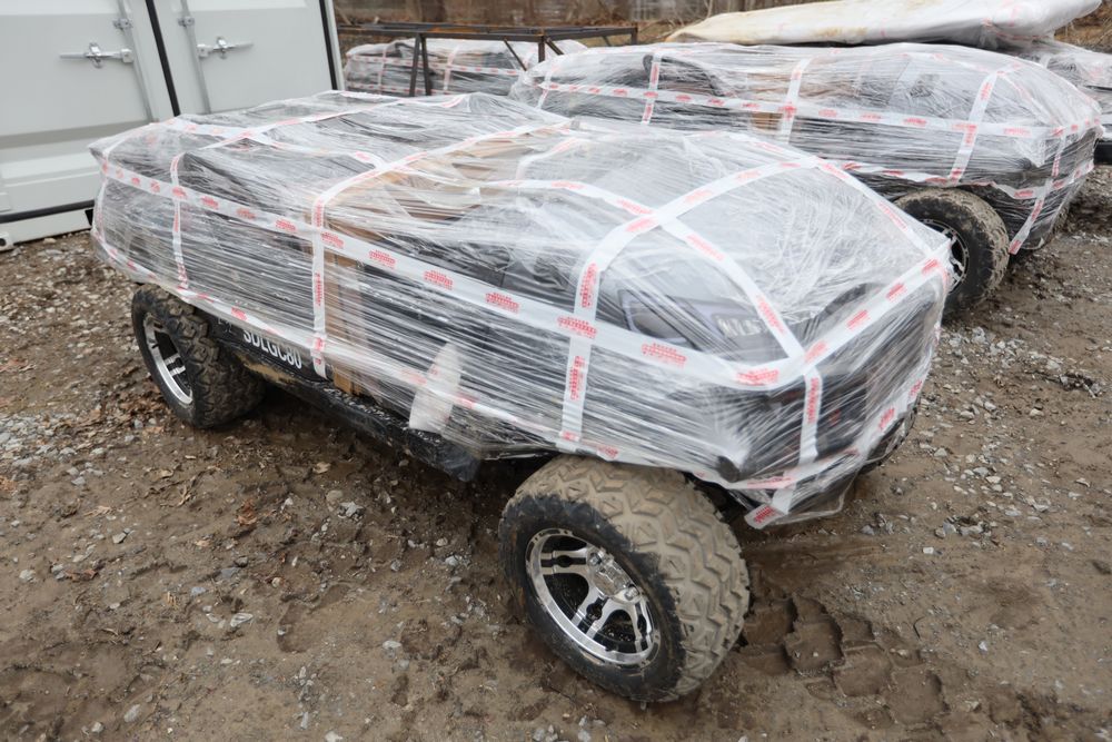New 2025 golf cart model SDLG80, seats four, top speed of 23-24mph, 4KW AC motor, canopy cover, front window, brush guard.. Comes disassembled, appearing to be complete. Condition may very. Sold as is.