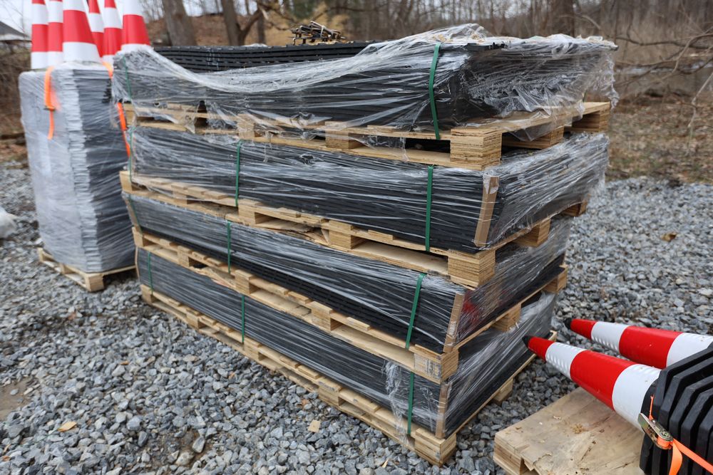 New 2025 ground protection mats model IRGPM with diamond plated smooth tread design. Total of 60 pcs. Dimensions are 4'Wx 8'Lx.05H" per mat.