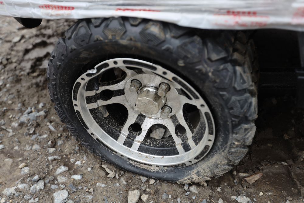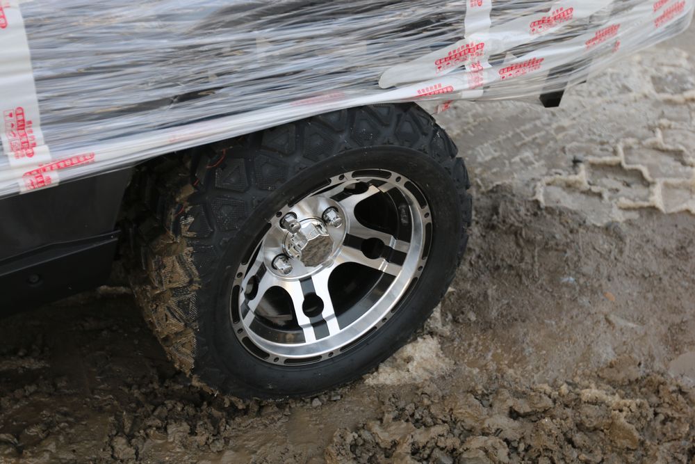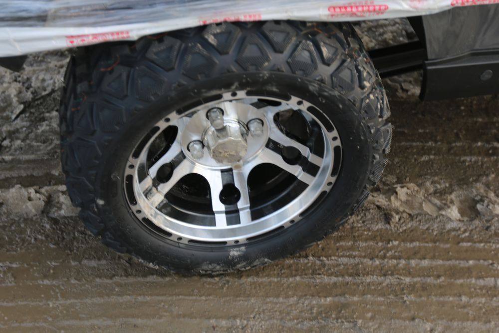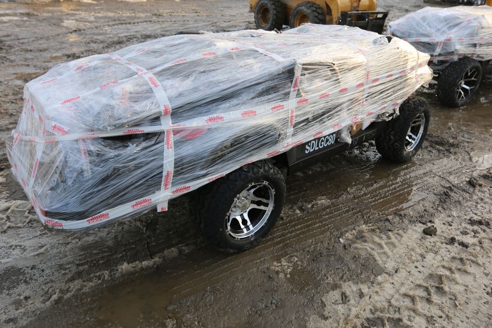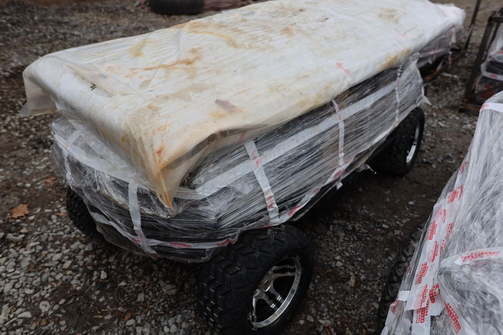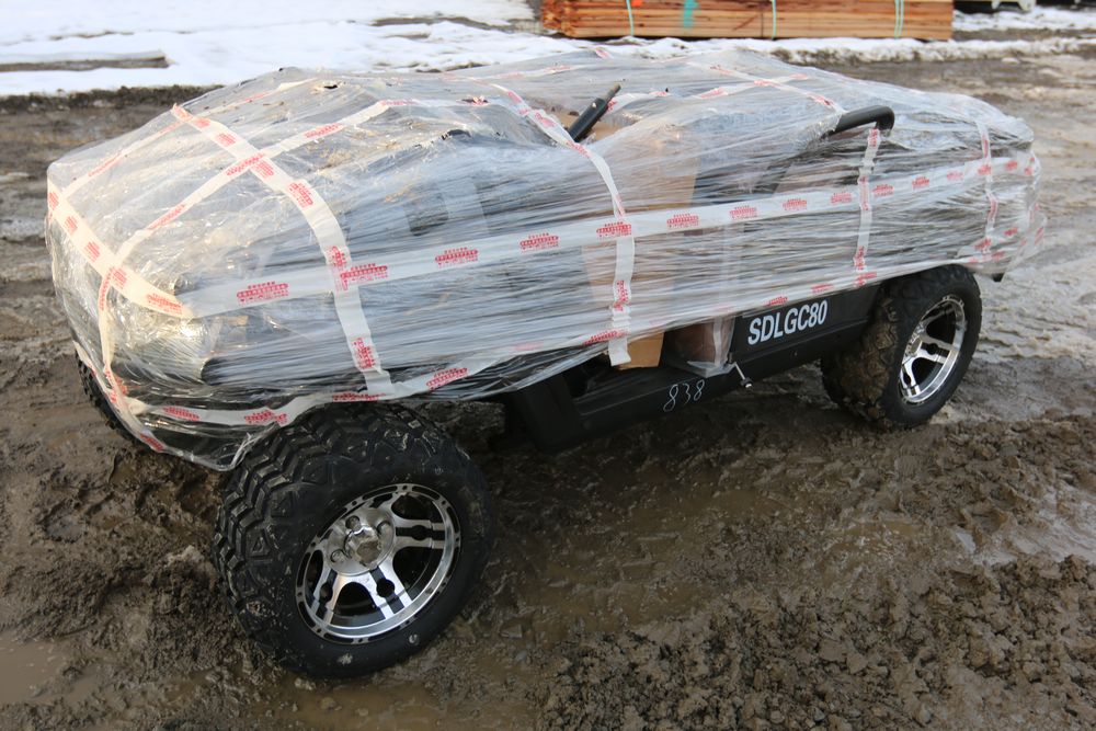 New 2025 golf cart model SDLG80, seats four, top speed of 23-24mph, 4KW AC motor, canopy cover, front window, brush guard.. Comes disassembled, appearing to be complete. Condition may very. Has damaged bumper and damaged tire/rim. Sold as is.