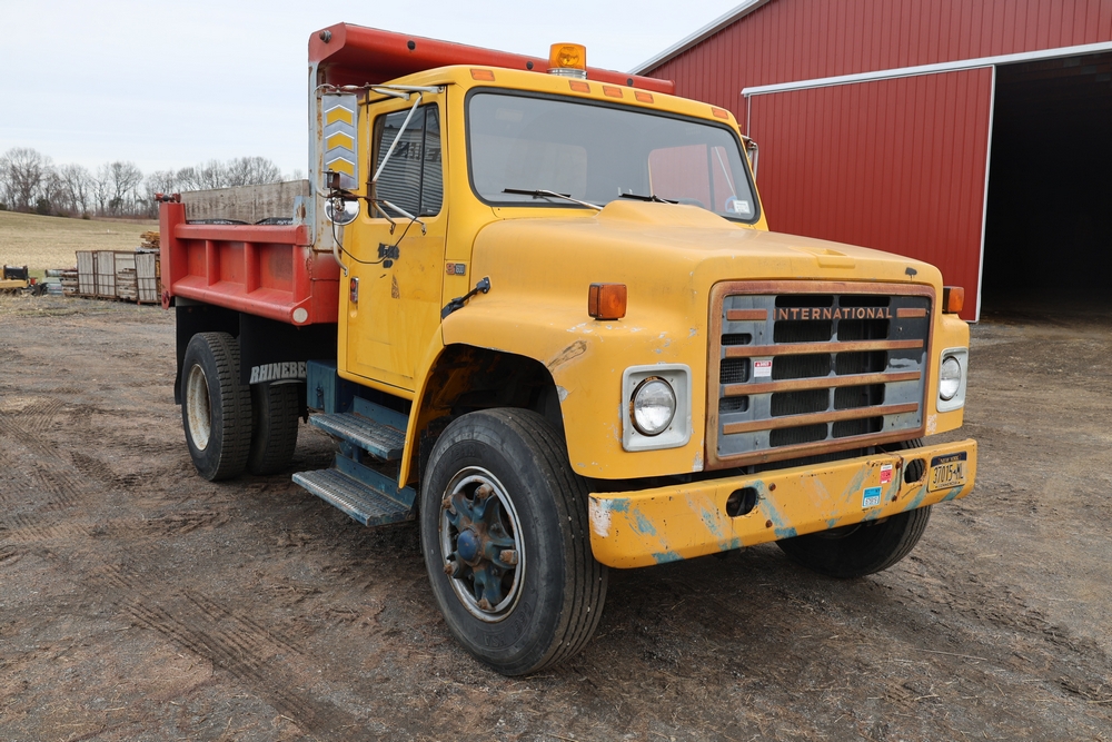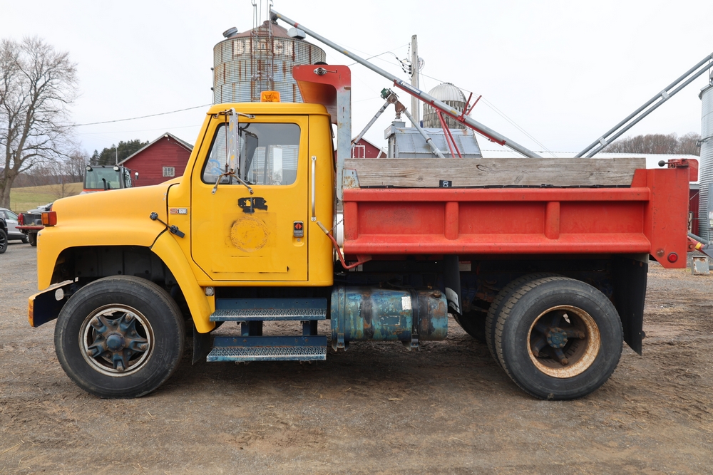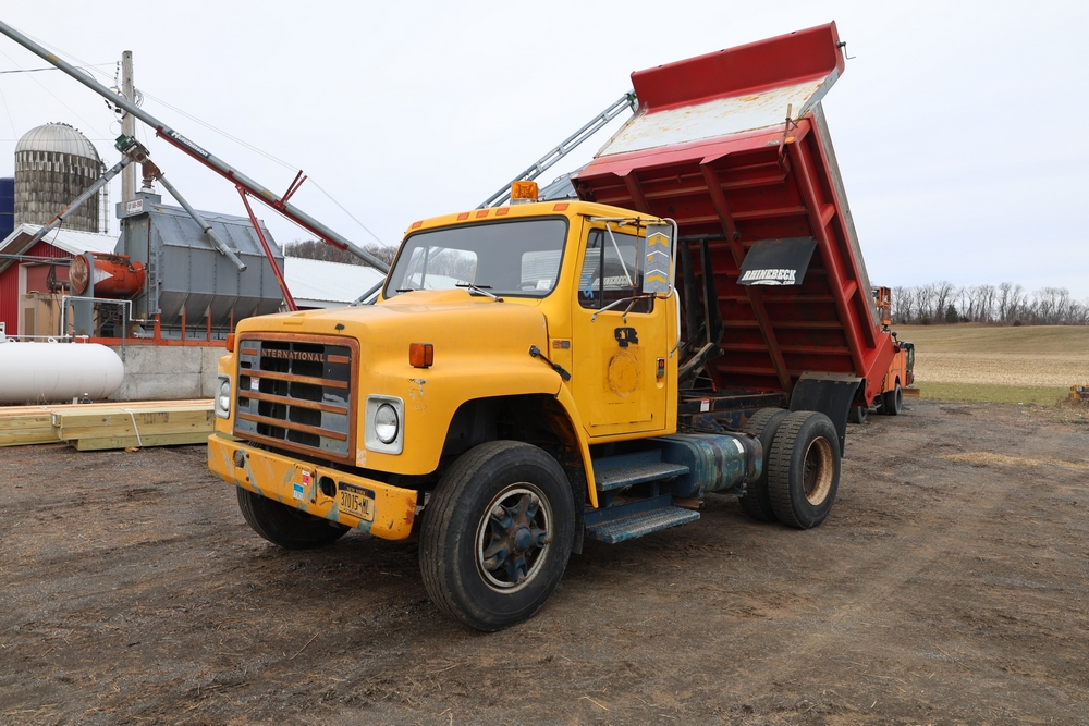 Items include 1980 Peterbilt 359 dump truck. 1989 International 1654; 1998 International 4700; 2001 Triton; New Holland BC5070 square baler; IMT 9800 Series crane attachment; Hesston 3710 hay tedder; Allis-Chalmers bale wagon; John Deere 444 corn head; set of large agricultural tractor tires; concrete form supplies & more. Items are located in Hopewell Junction, NY.