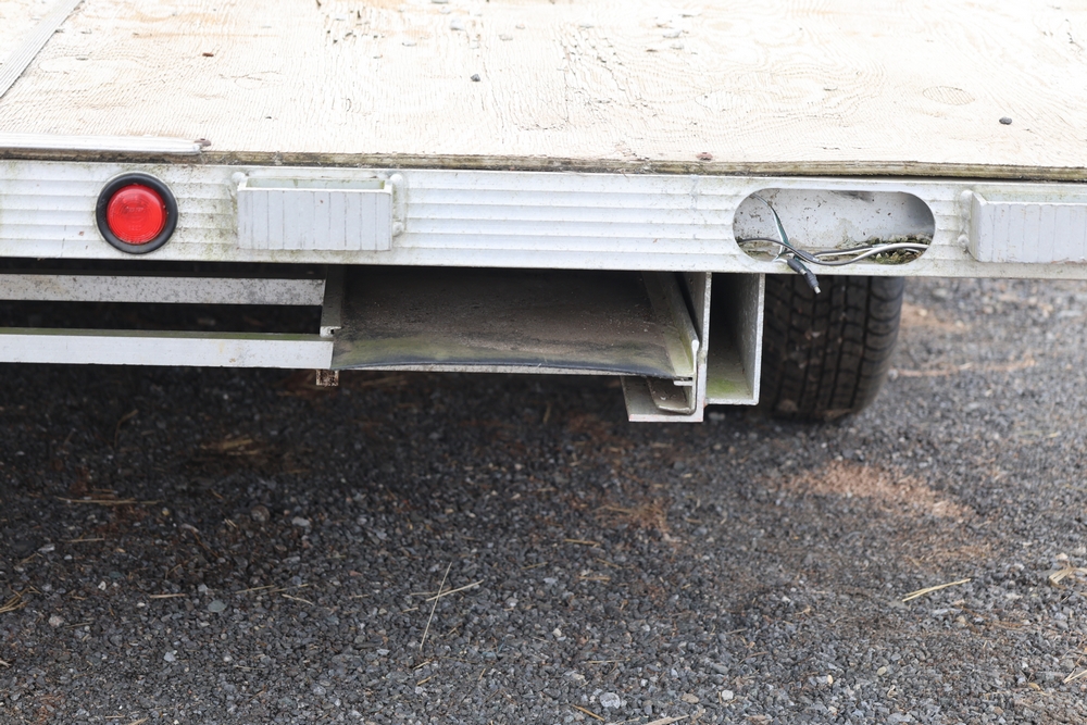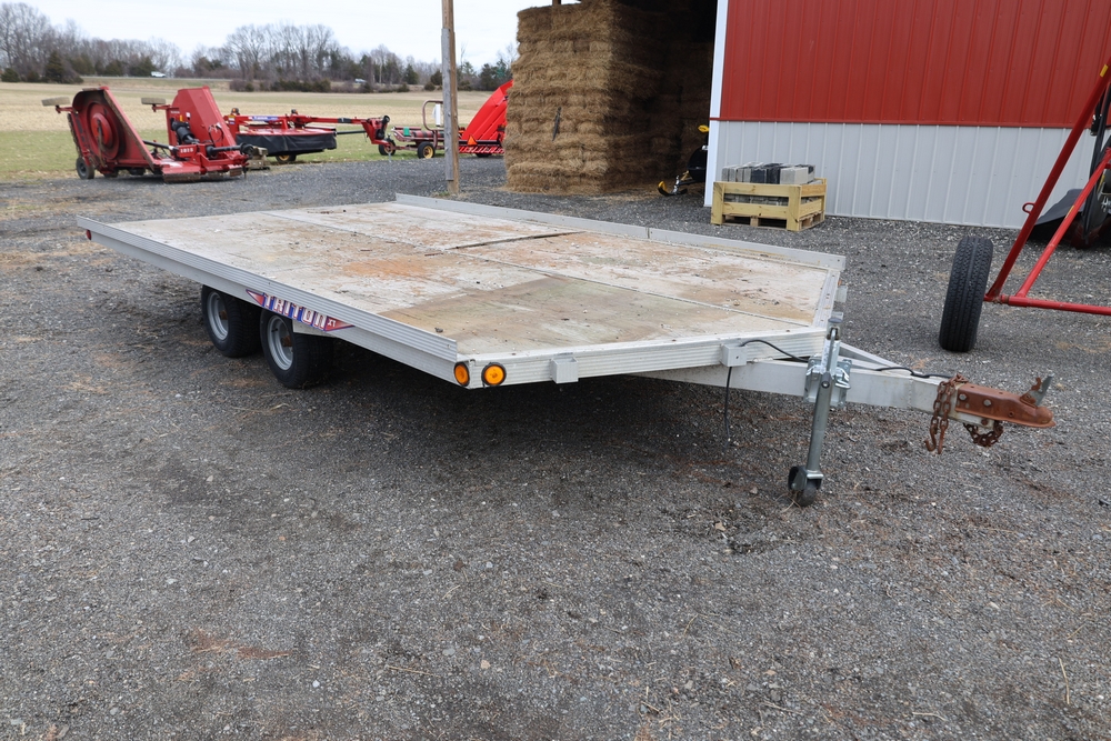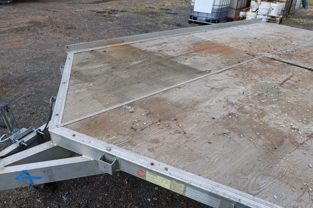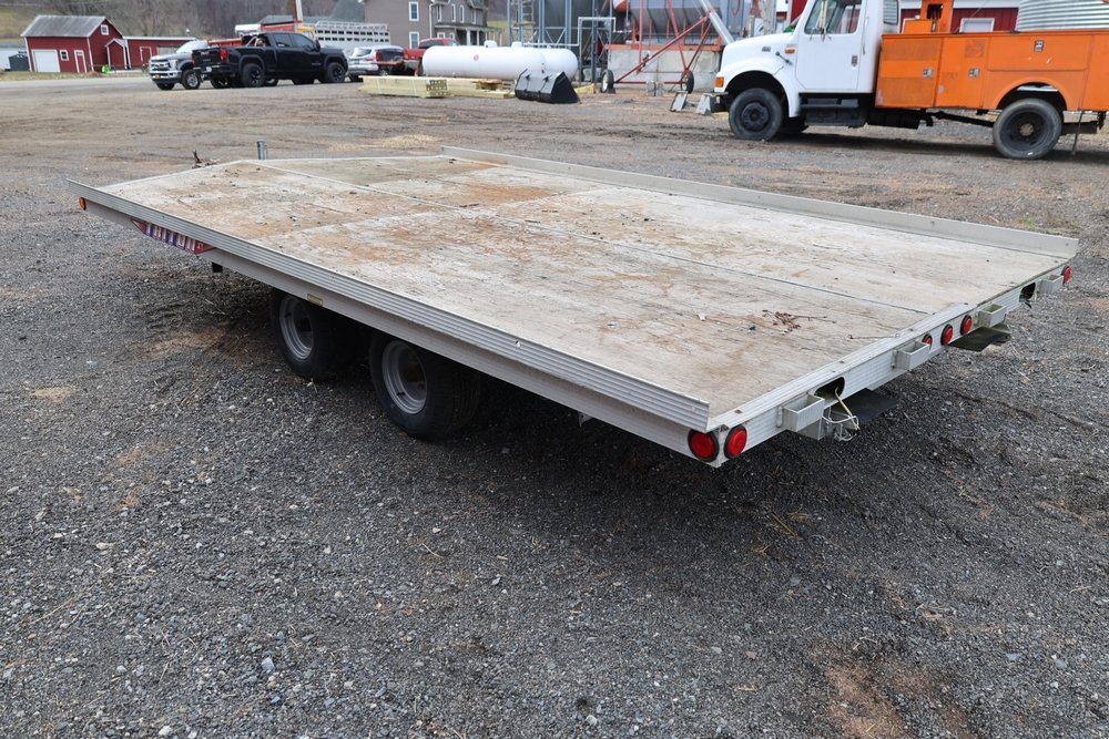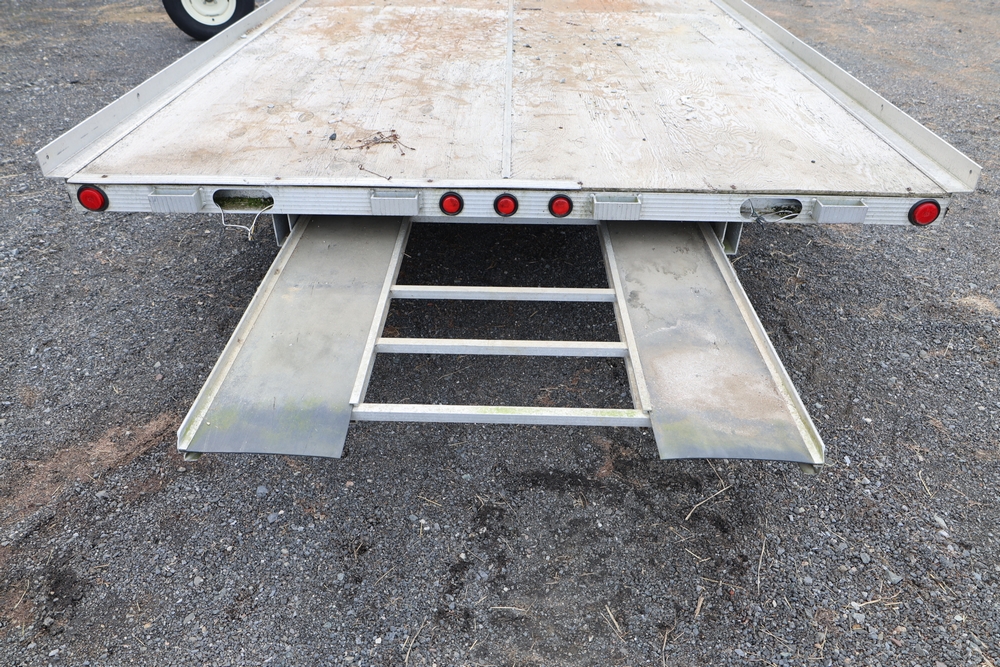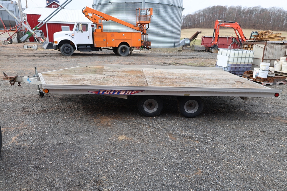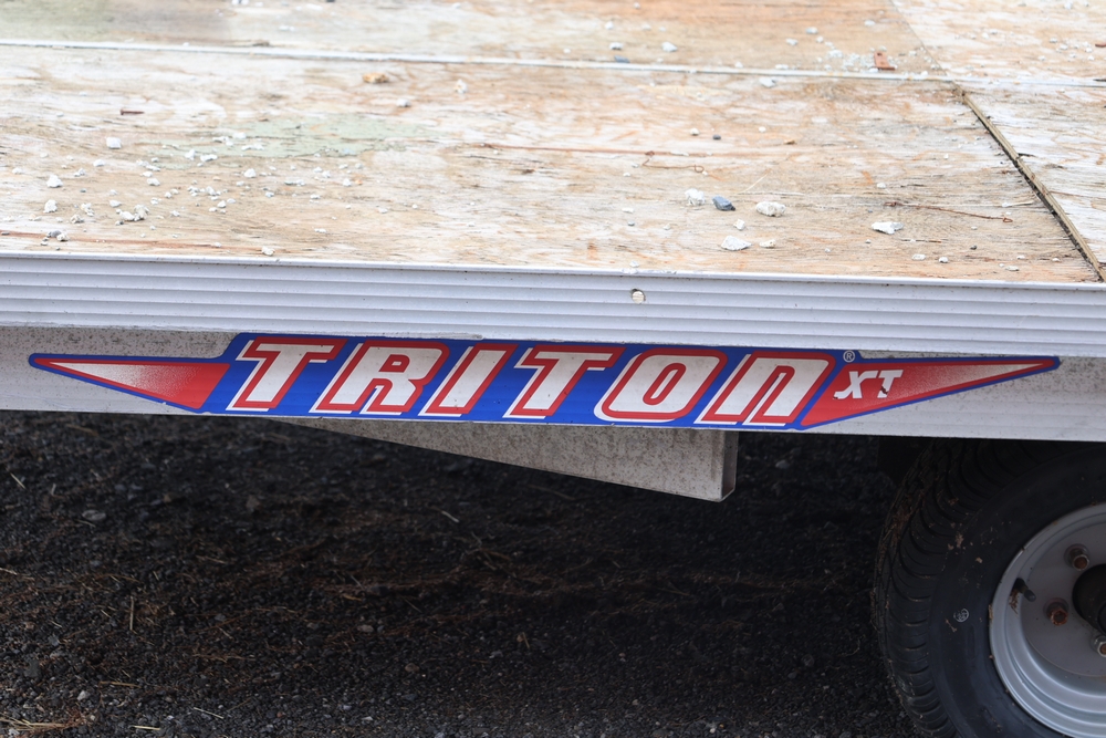 2001 Triton . VIN 4TCSS11481H114330. Aluminum deck, dual axle, rear loading ramps. Title available.