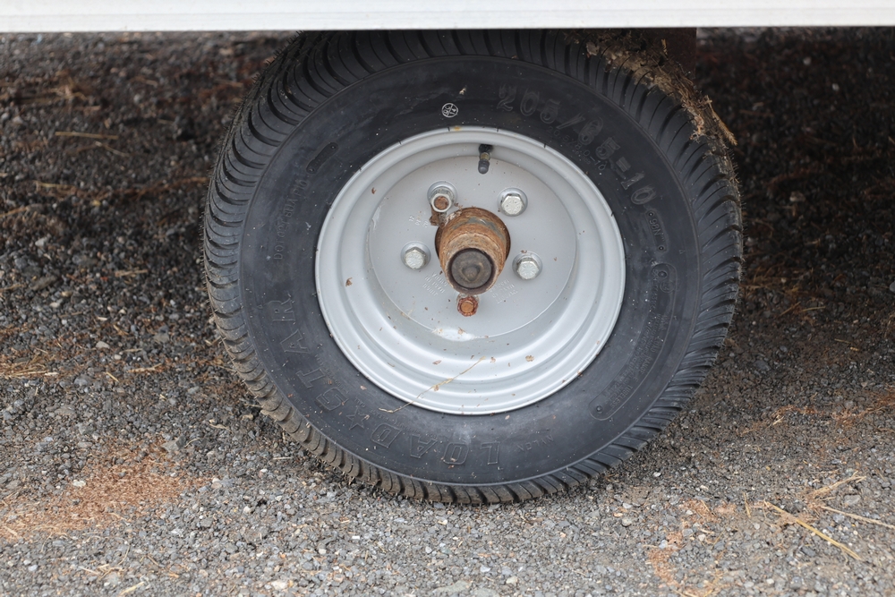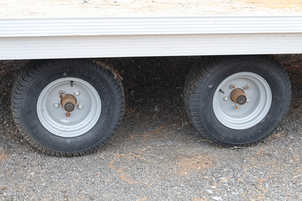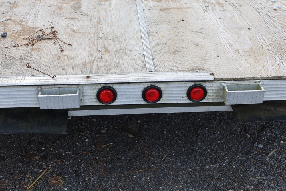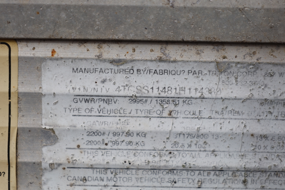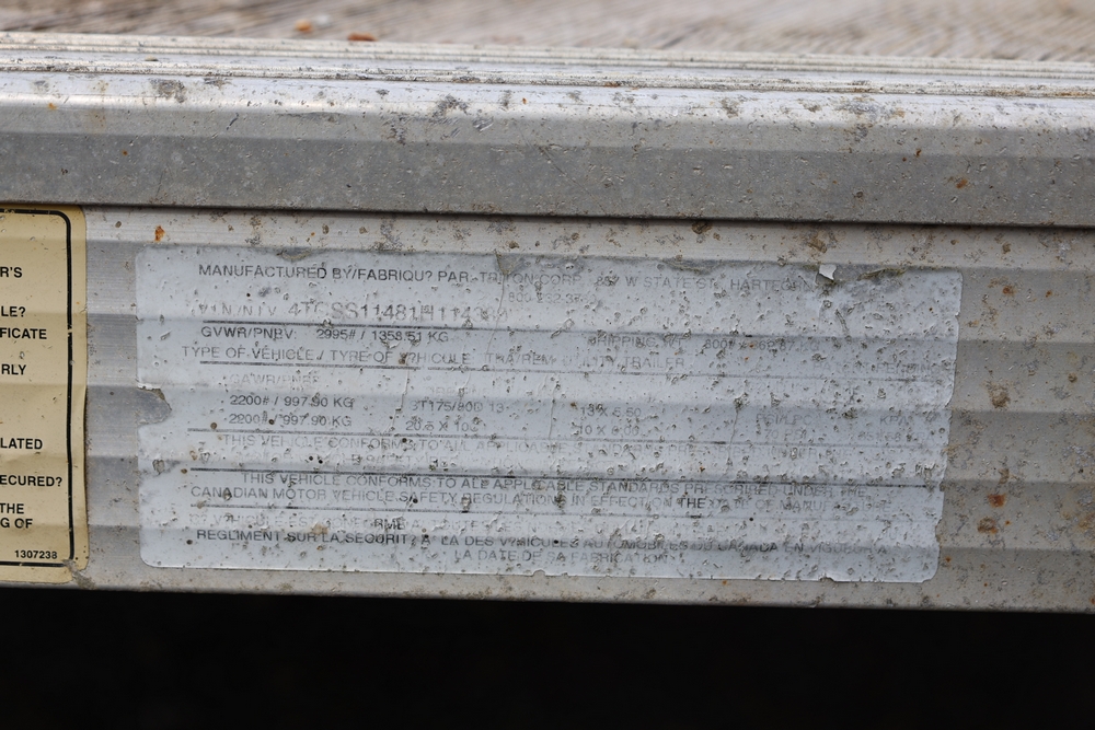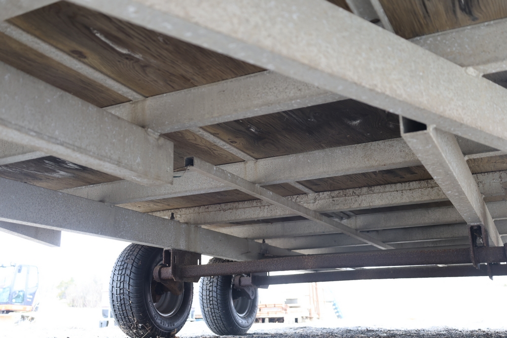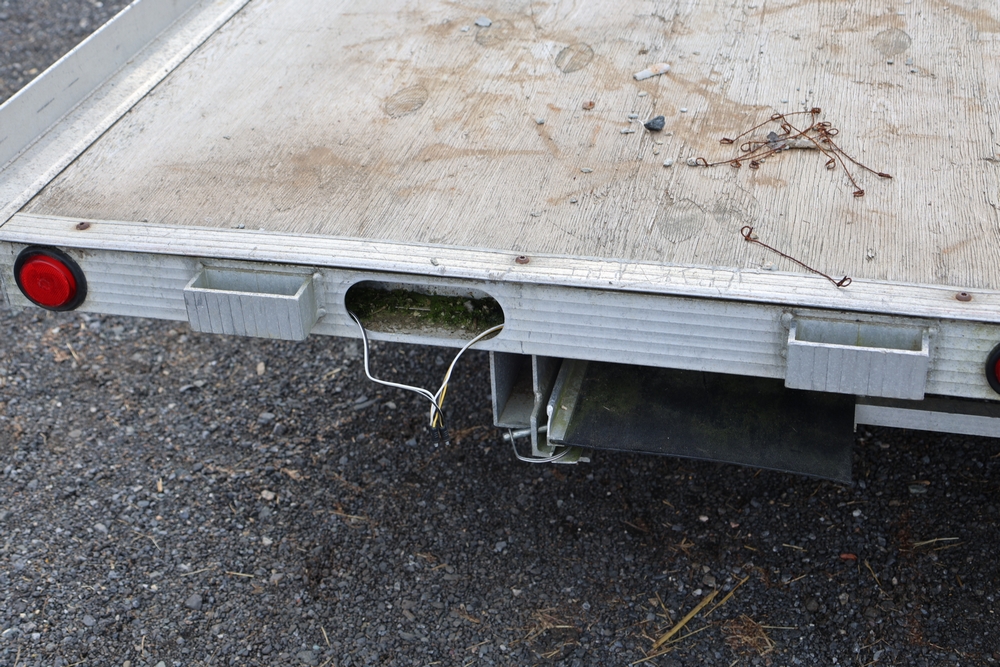 2001 Triton . VIN 4TCSS11481H114330. Aluminum deck, dual axle, rear loading ramps. Title available.