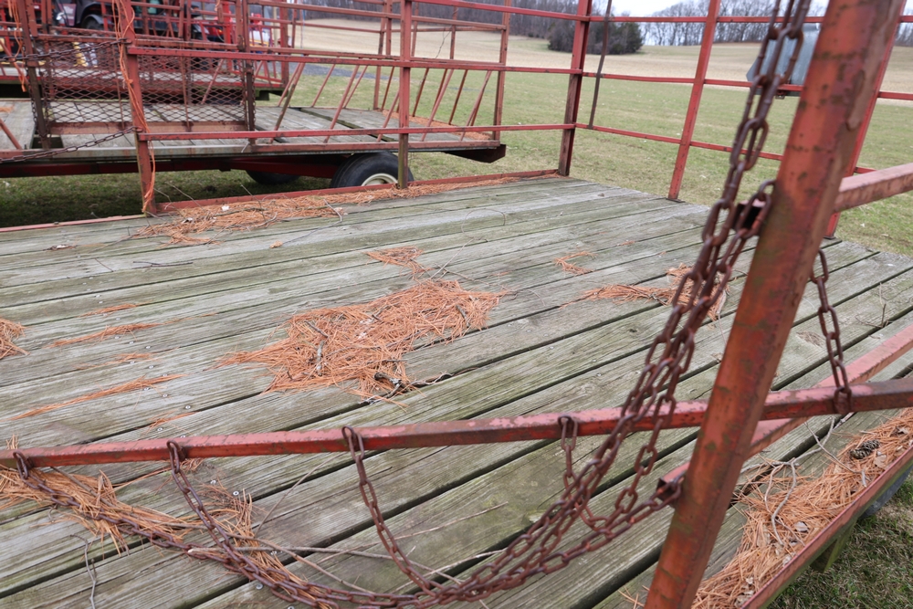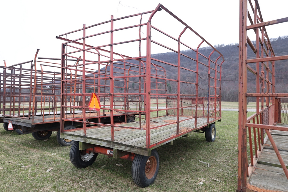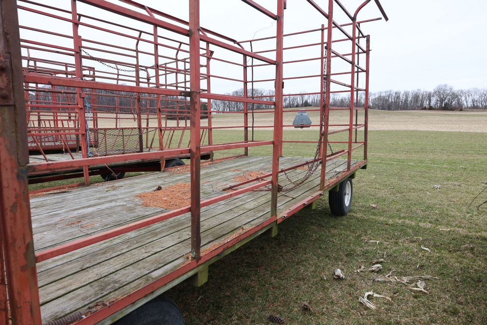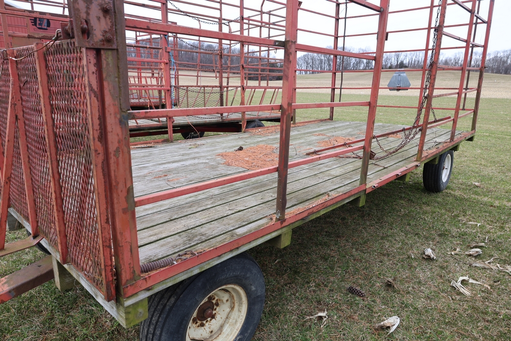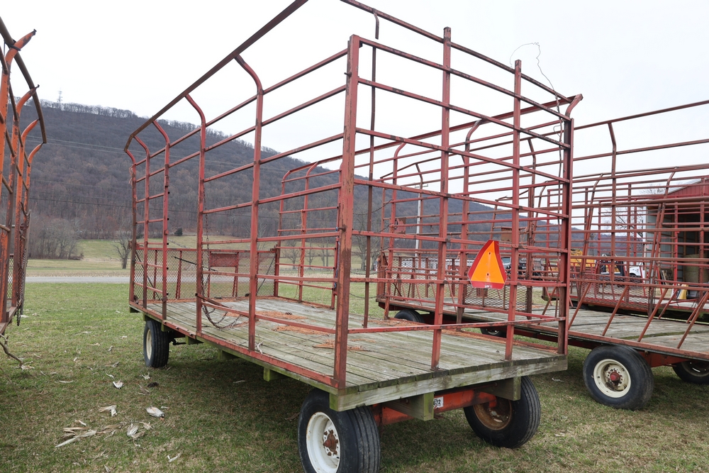 Items include 1980 Peterbilt 359 dump truck. 1989 International 1654; 1998 International 4700; 2001 Triton; New Holland BC5070 square baler; IMT 9800 Series crane attachment; Hesston 3710 hay tedder; Allis-Chalmers bale wagon; John Deere 444 corn head; set of large agricultural tractor tires; concrete form supplies & more. Items are located in Hopewell Junction, NY.
